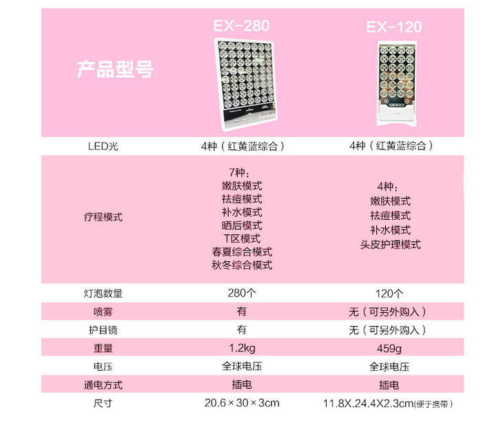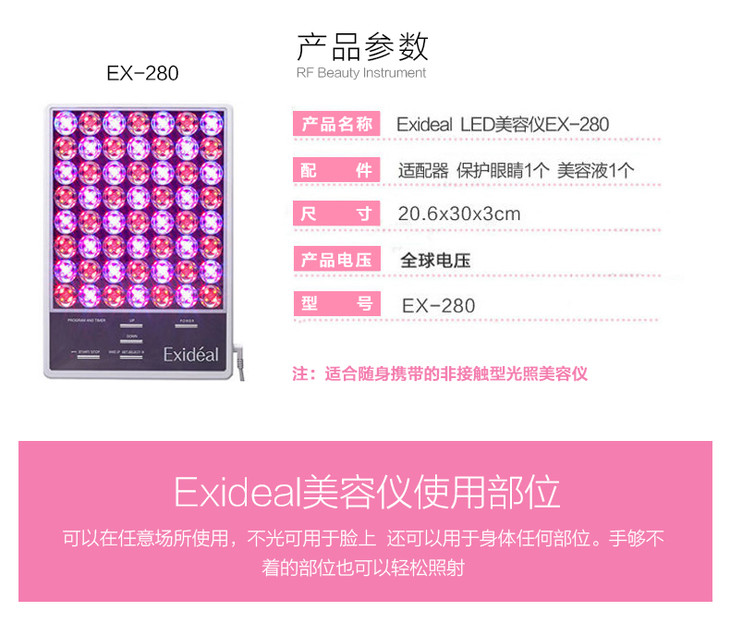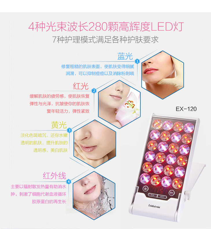 日本exideal led 脸部彩光光子嫩肤美容仪器家用 小排灯EX-120