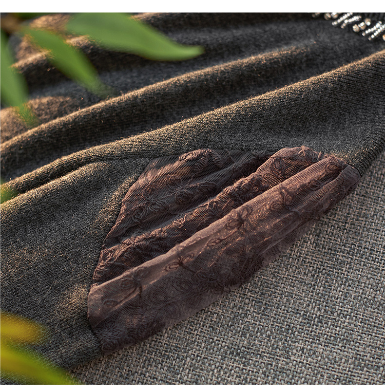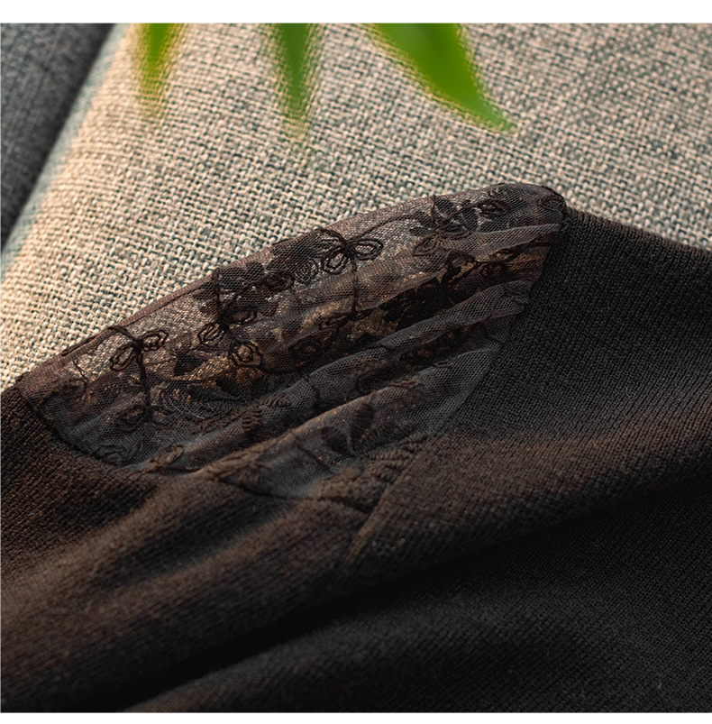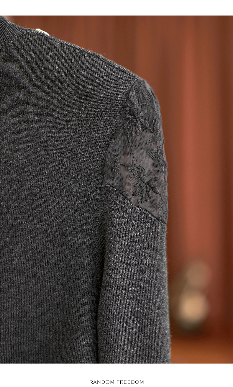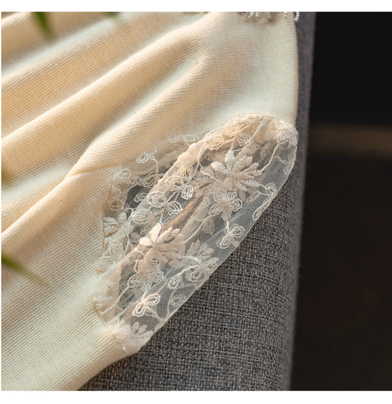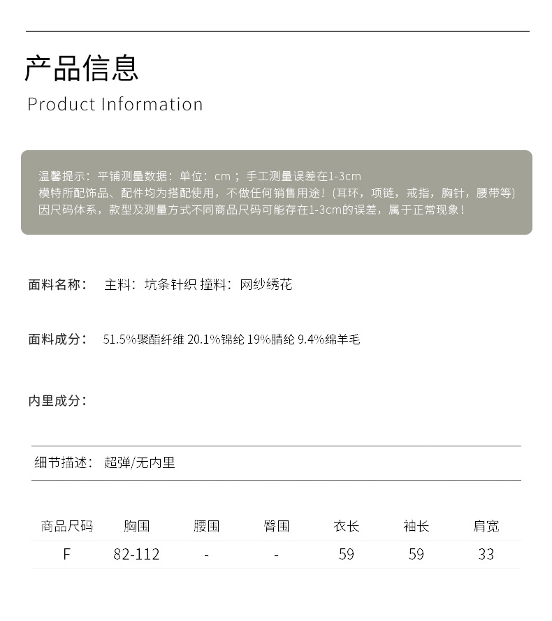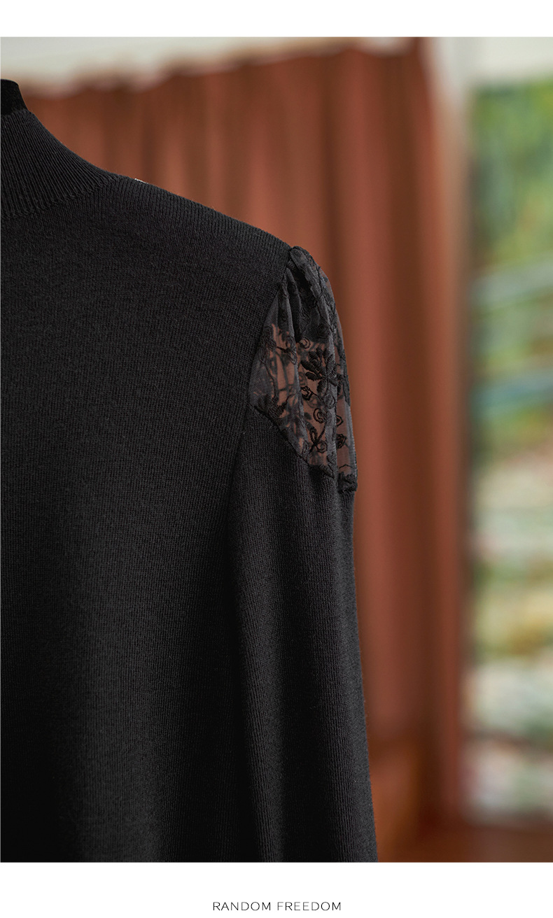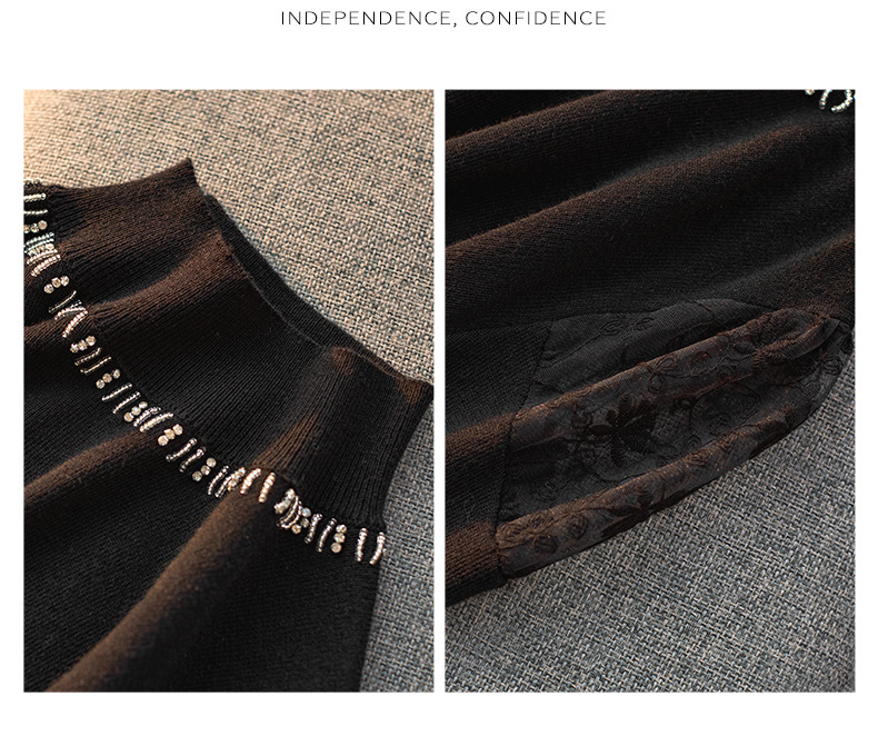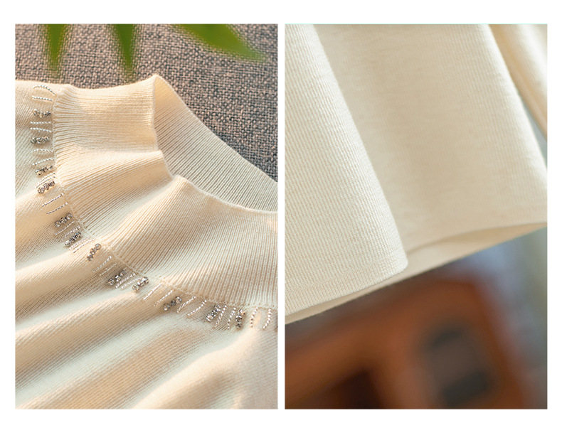 【高货wl】全新升级【铂金会员183/天猫249/差价66】(33510)洛诗琳通勤休闲时尚半高领钉珠镂空蕾丝刺绣针织打底衫