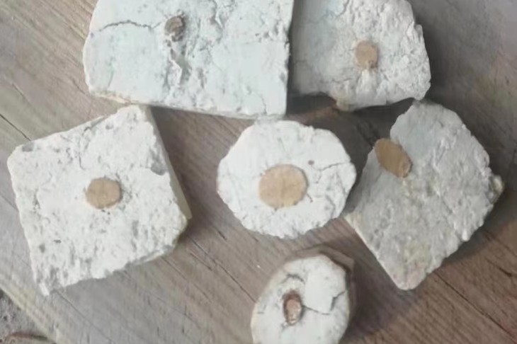 茯苓从2016年开始防野生种植(每年开春时,采用当地自制的菌种(松树木屑、茯神木、茯苓皮、玉米面),菌种未加催发剂或营养素。