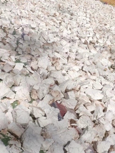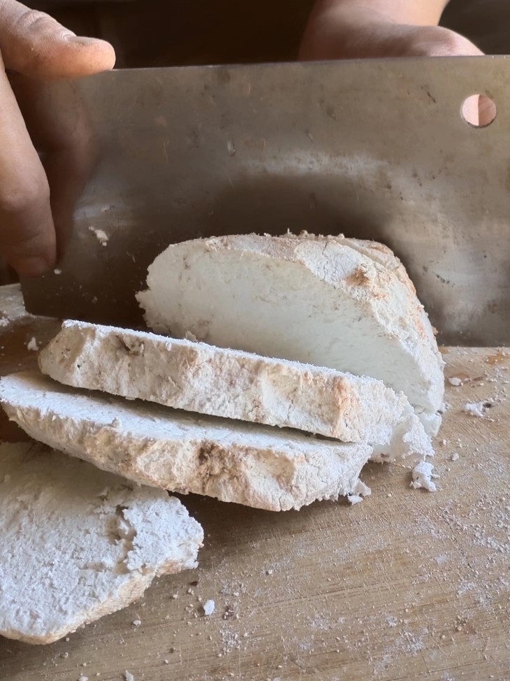 茯苓采挖后,放置在阴凉干燥处,阴干2天,让它自然“发汗”,等出现皱纹、内部水分大部分散失后,切除黑色表皮,切块,在太阳下晒干,无硫熏。