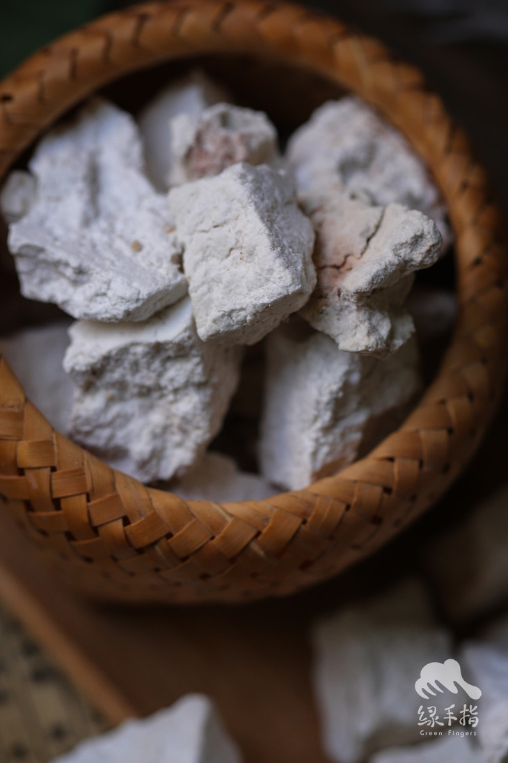 3,茯苓是纤维作物,采挖后没有再进行深加工(一般的处理办法是磨粉再塑形),直接切片再晒干,所以会有一些棉絮状。