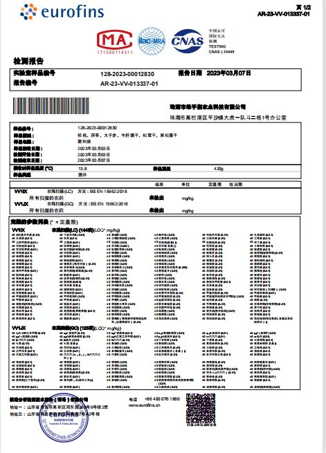 茯苓上架前和康丽家的其他食材一起做了个267项农残混检(未检出)。