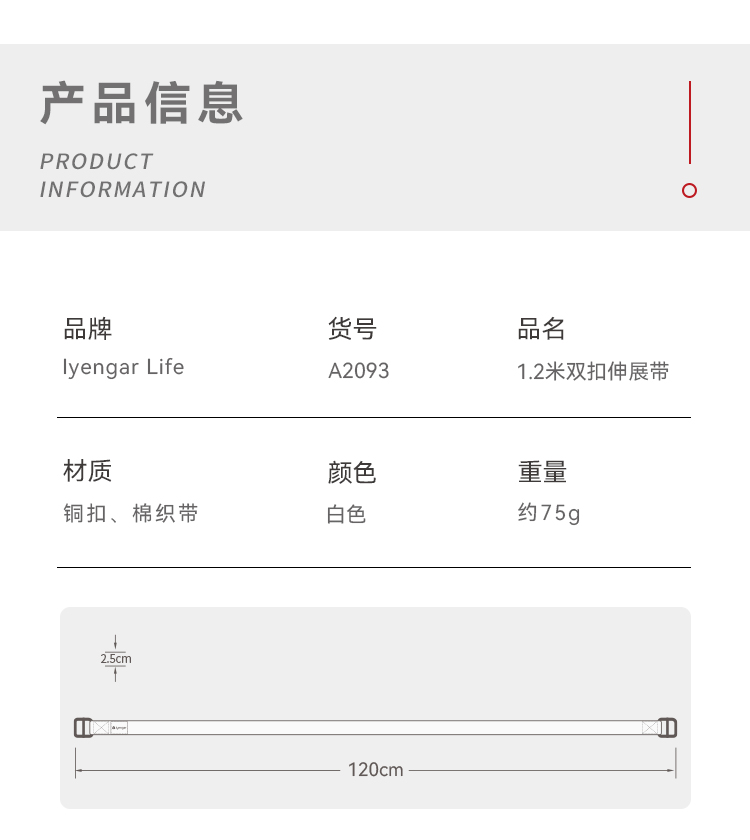 艾扬格 life A2093双扣伸展带(白色1.2米) 两头扣伸展带