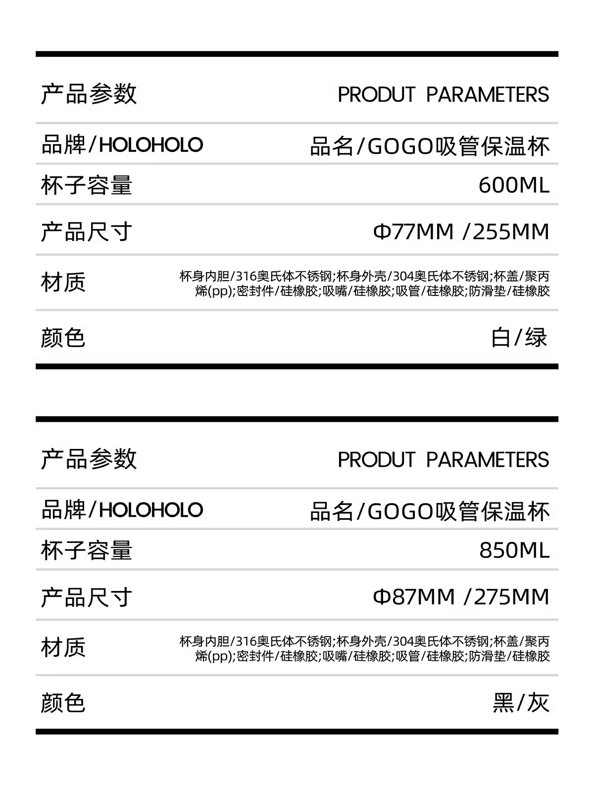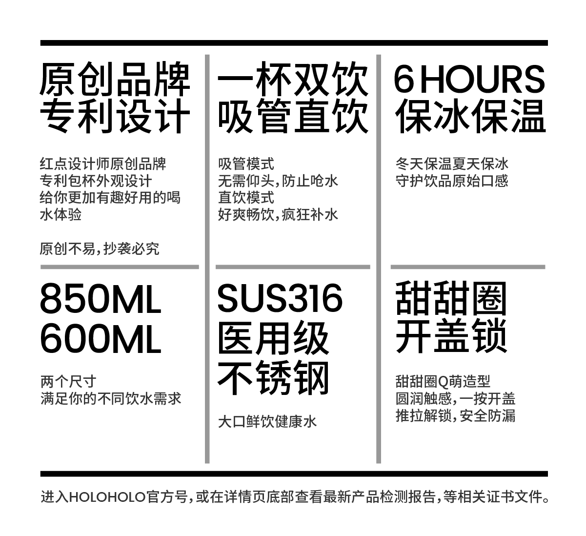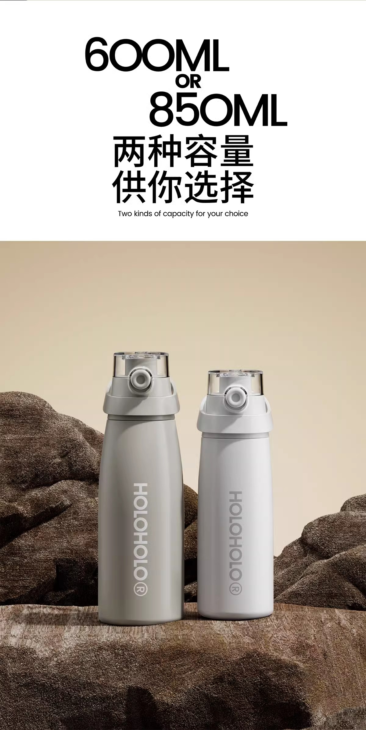 HOLOHOLO户外随行普拉提保温杯灰色(850ml)