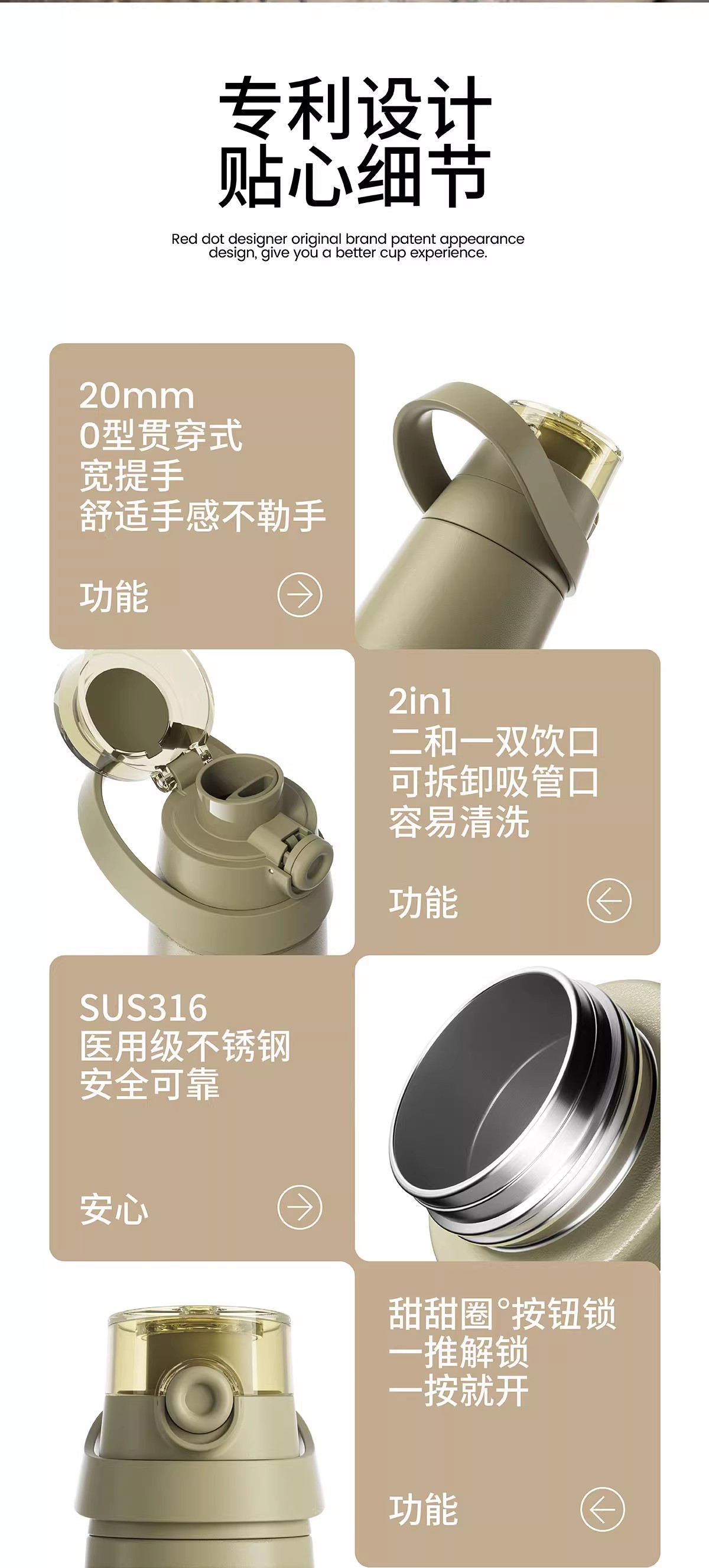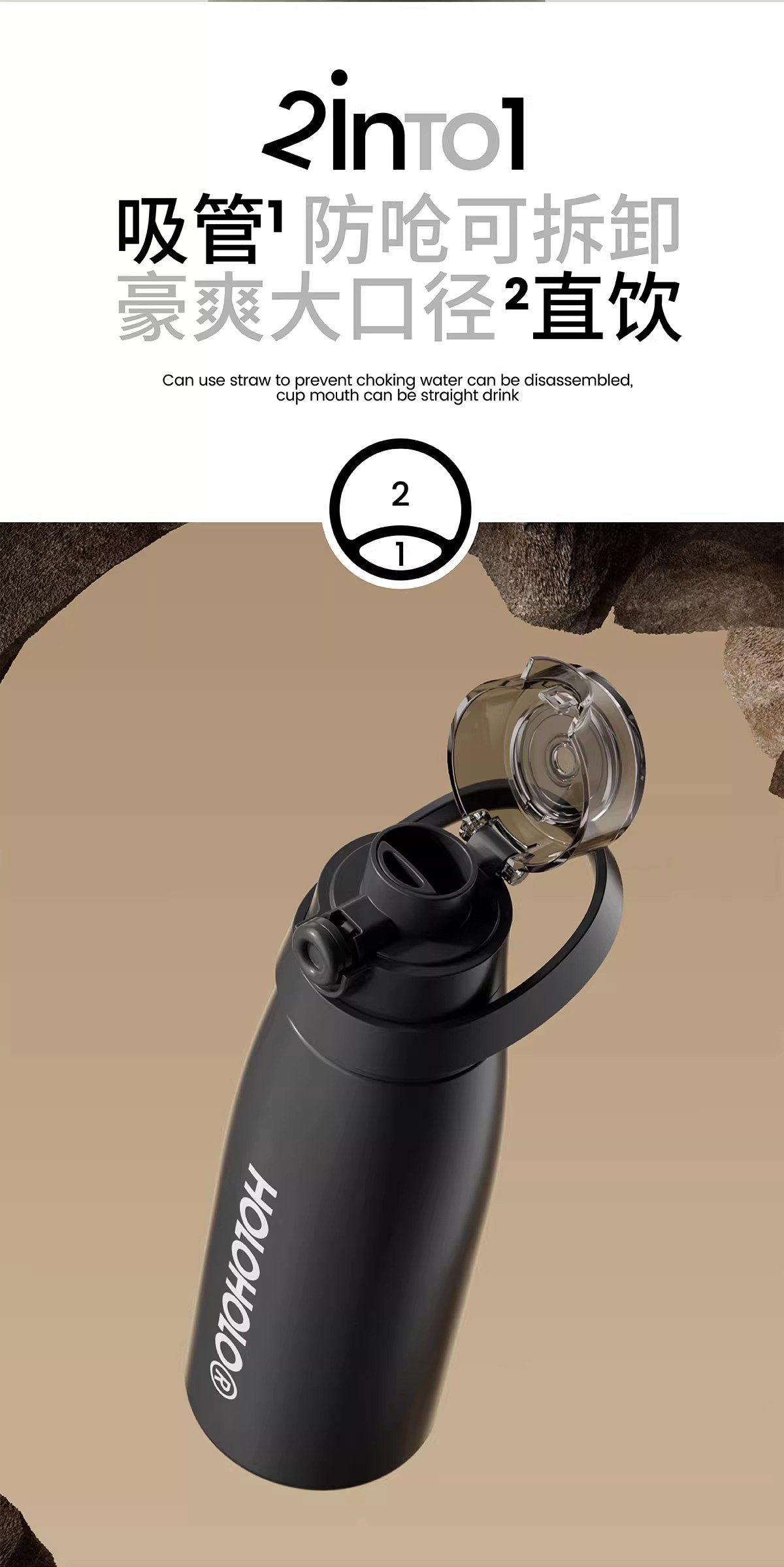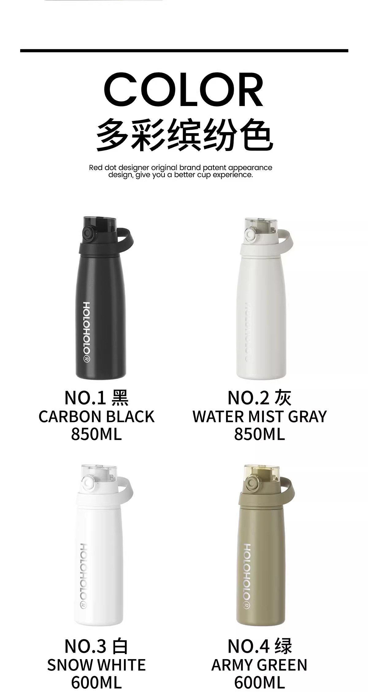 HOLOHOLO户外随行普拉提保温杯灰色(850ml)
