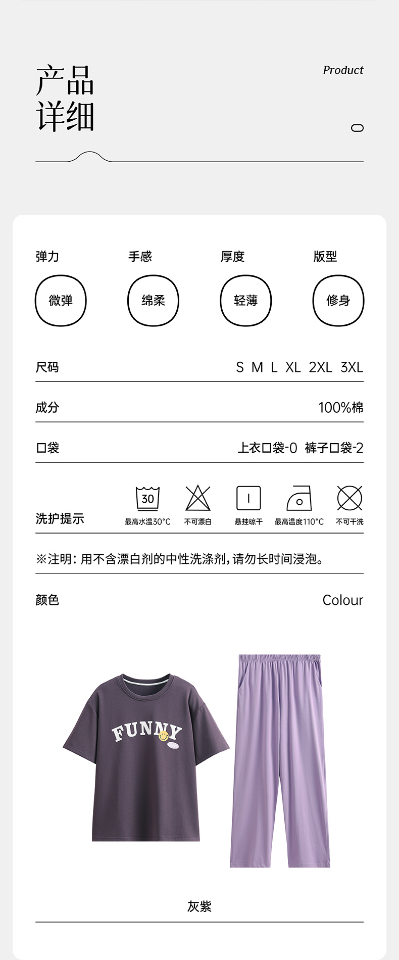芬腾睡衣女款夏纯棉薄款短袖长裤套头全棉可爱外穿空调家居服套装