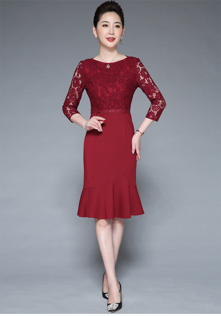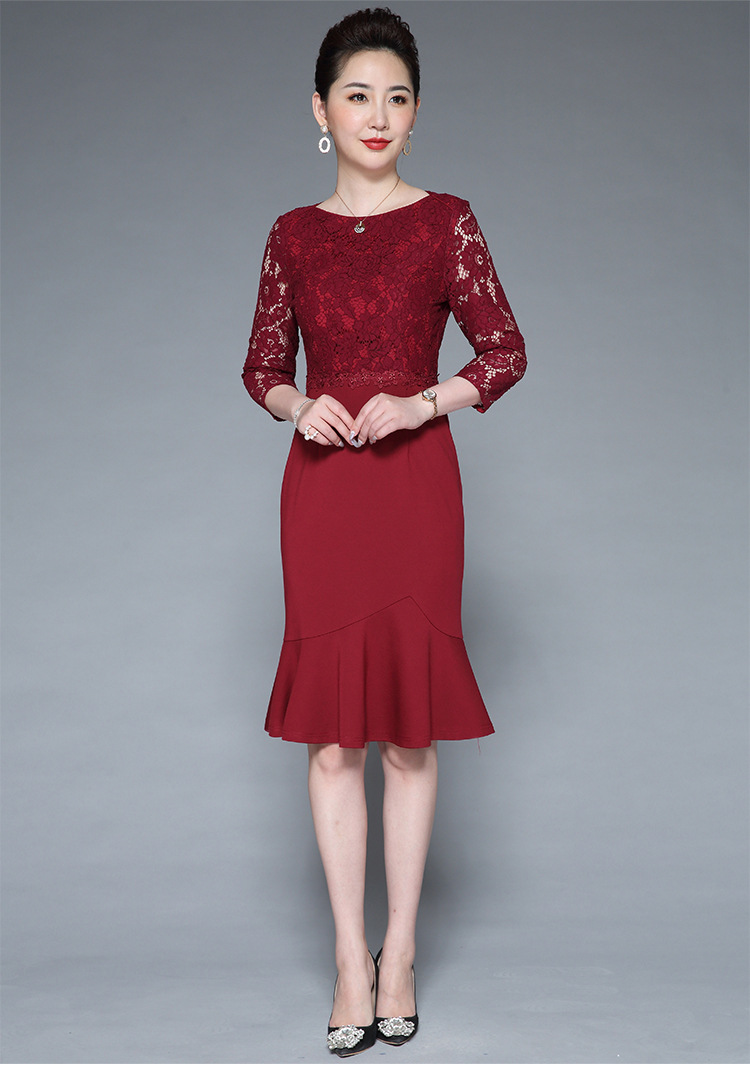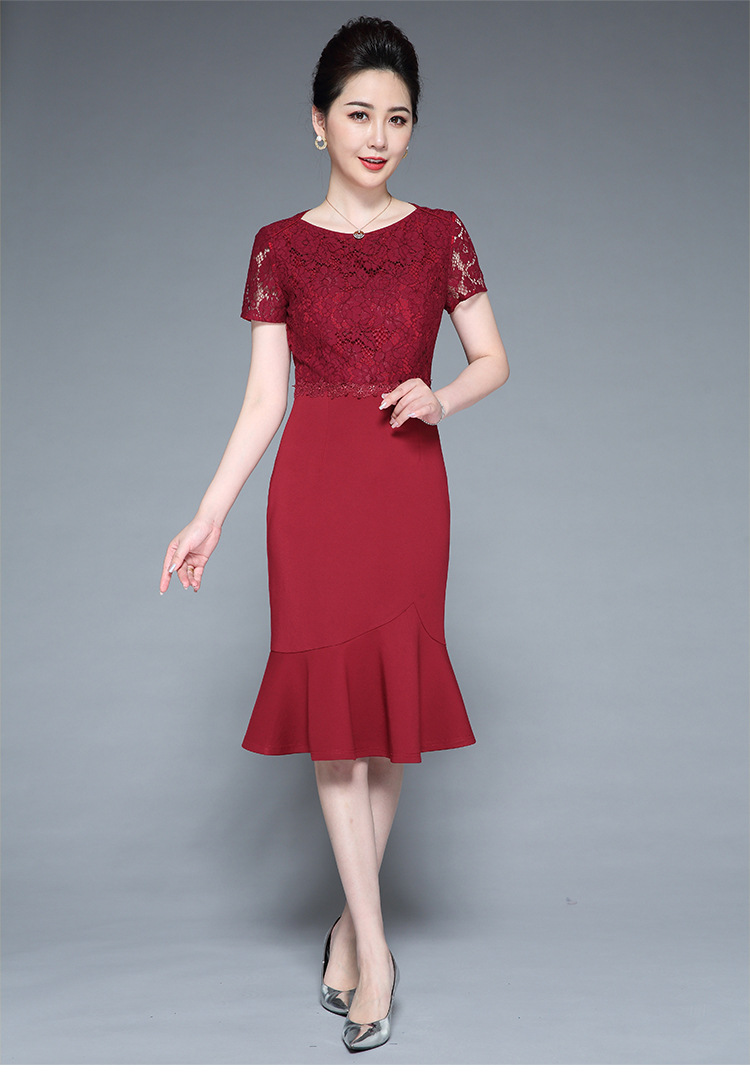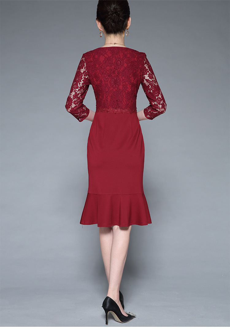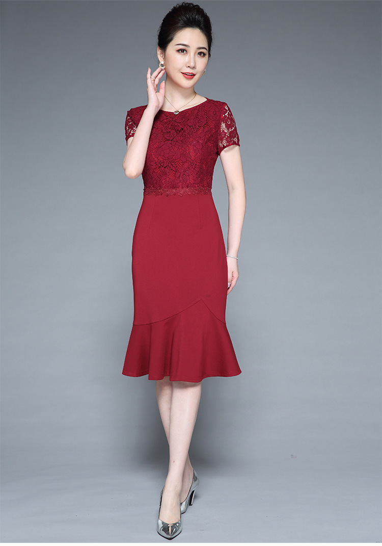 ZY-Q5386新品蕾丝镂空修身气质连衣裙下摆不规则包臀裙
