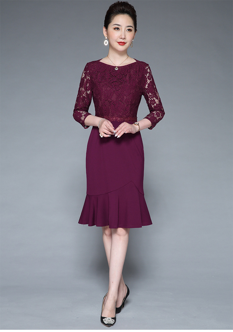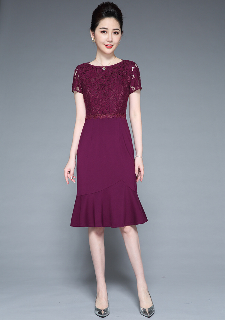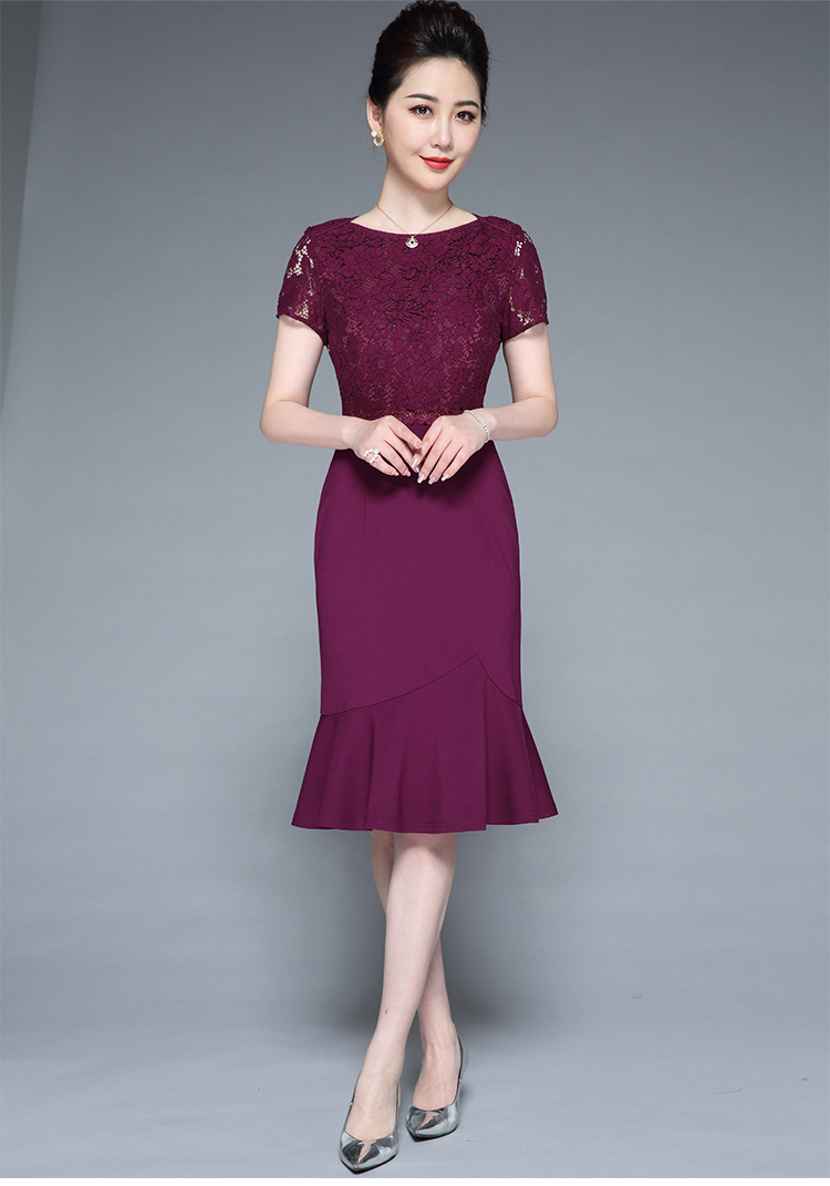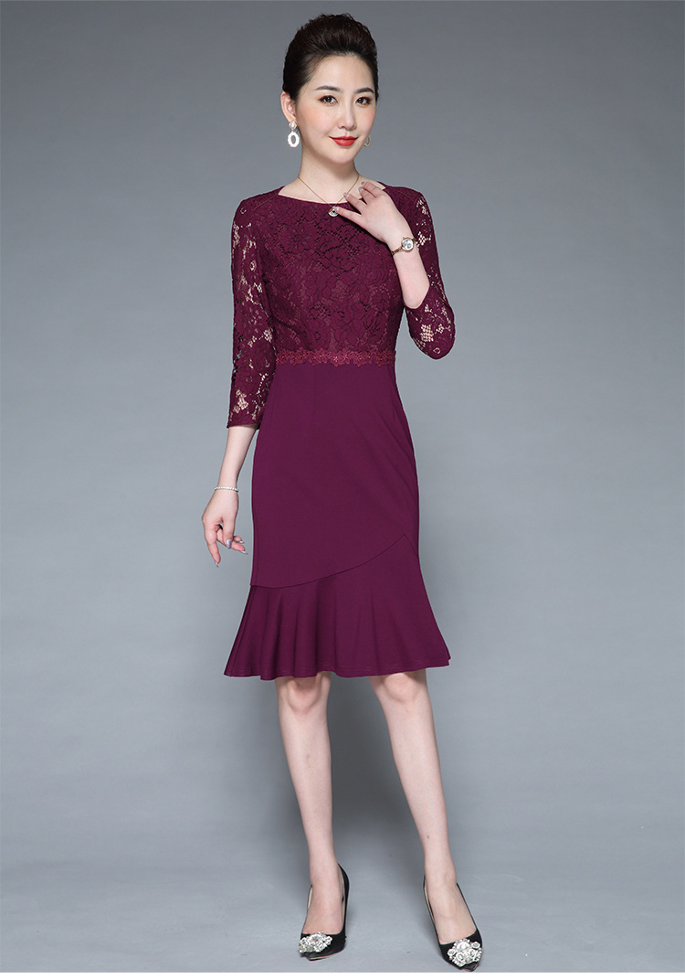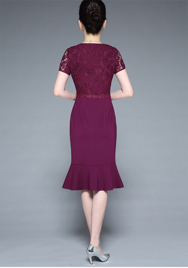 ZY-Q5386新品蕾丝镂空修身气质连衣裙下摆不规则包臀裙