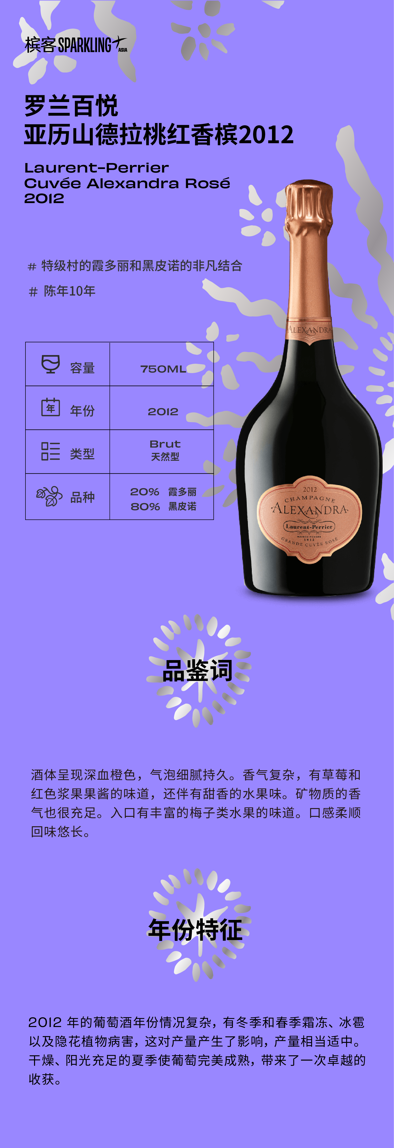 Laurent Perrier Alexandra Rosé Millésimé 2012 罗兰百悦亚历山德拉桃红香槟 2012