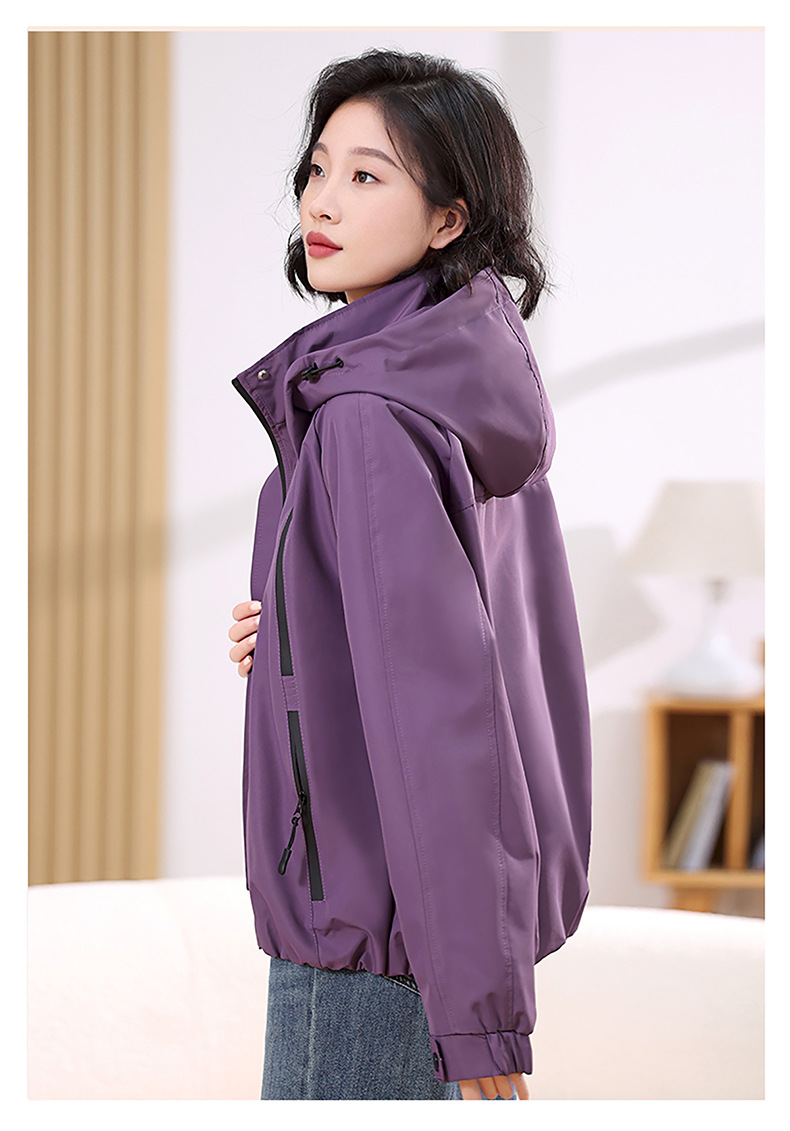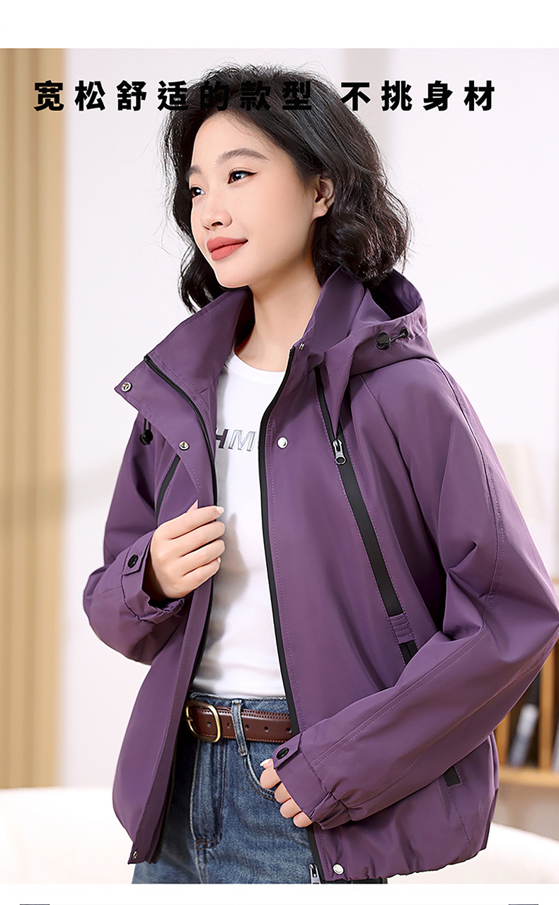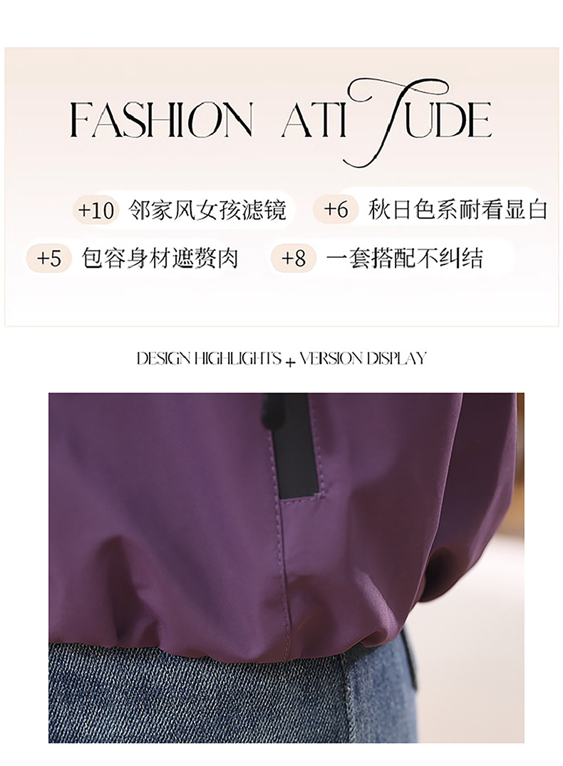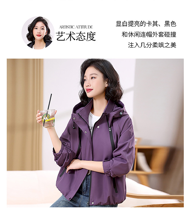 百媚生 小个子宽松休闲百搭连帽紫色外套风衣BKNJL2650 商品图2