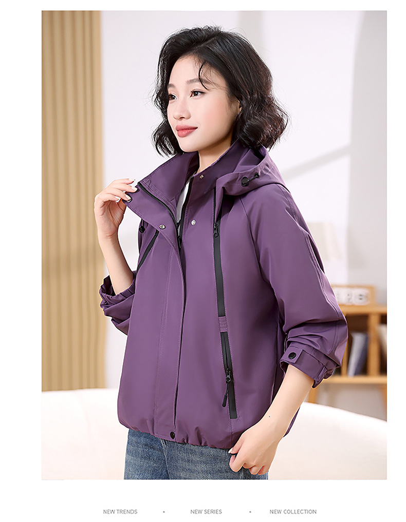 百媚生 小个子宽松休闲百搭连帽紫色外套风衣BKNJL2650 商品图0