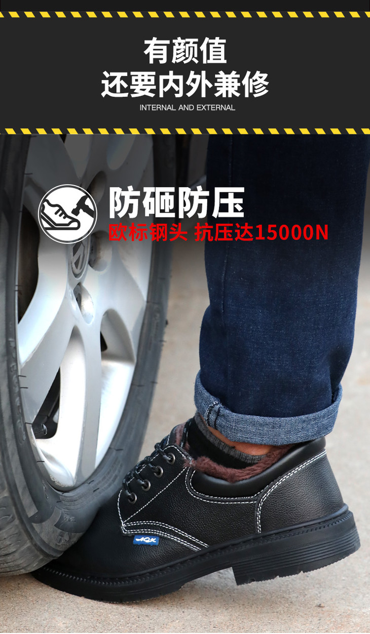 劳保鞋男钢包头防砸防刺耐磨橡胶底舒适防臭安全工作鞋棉款