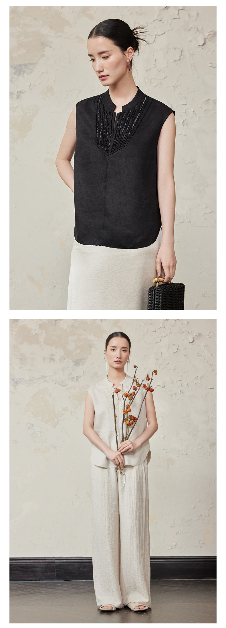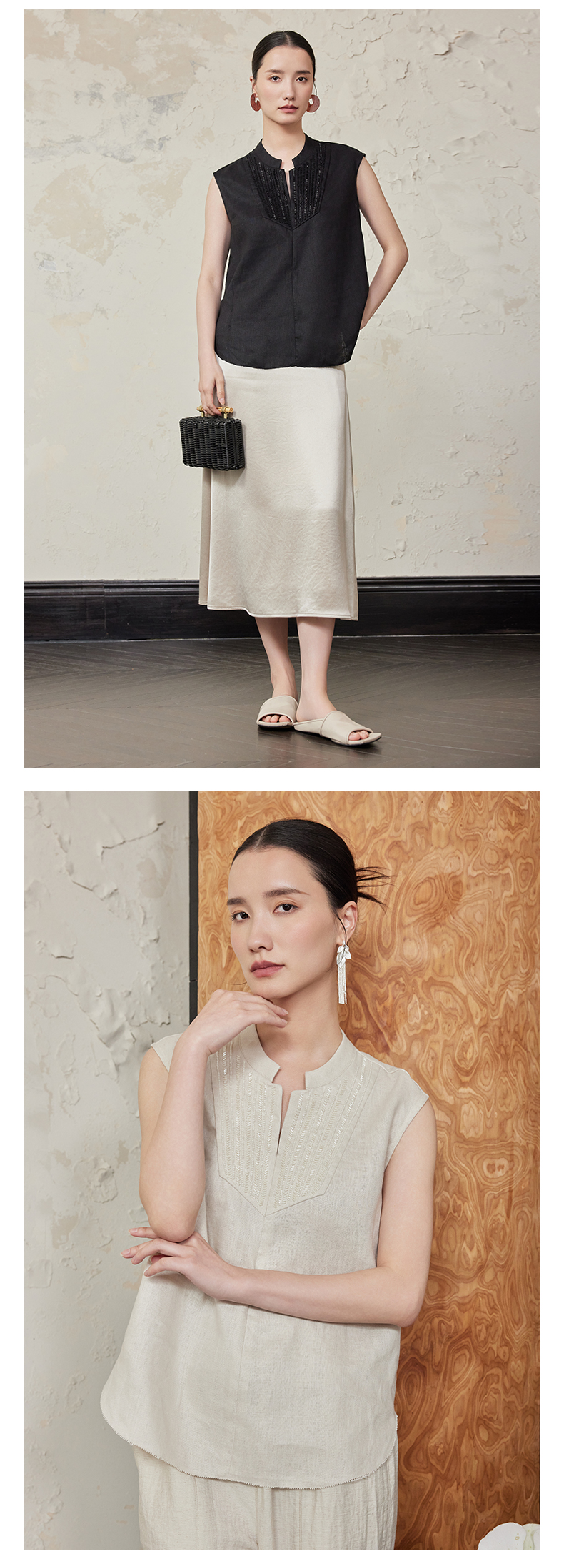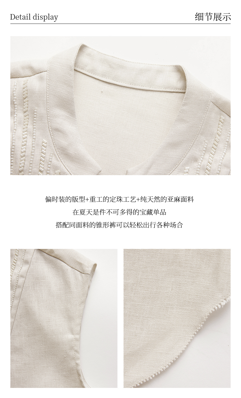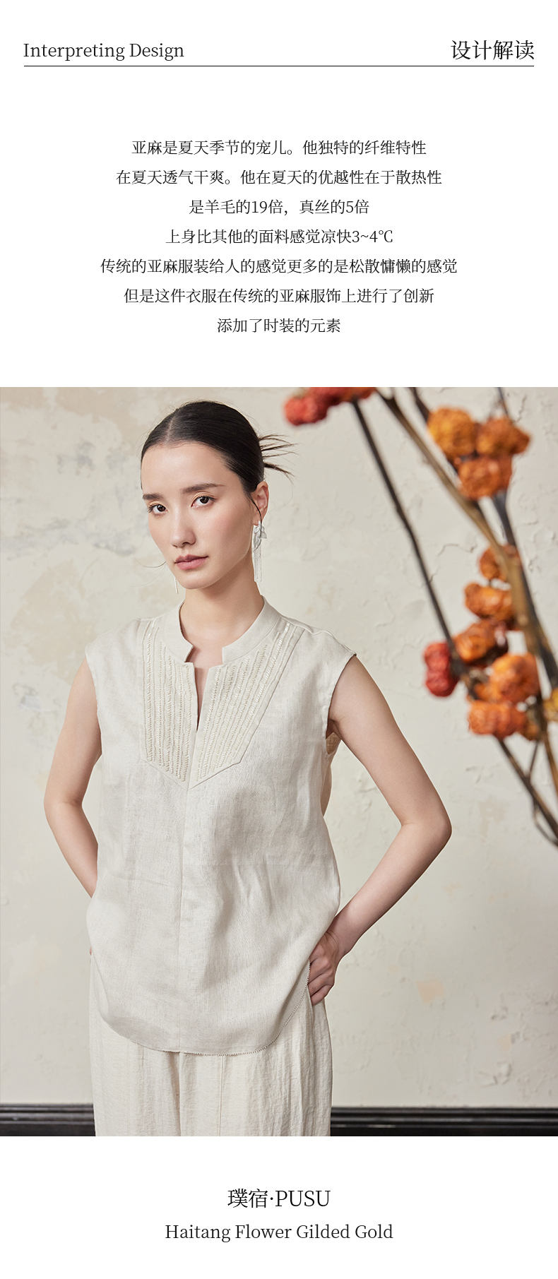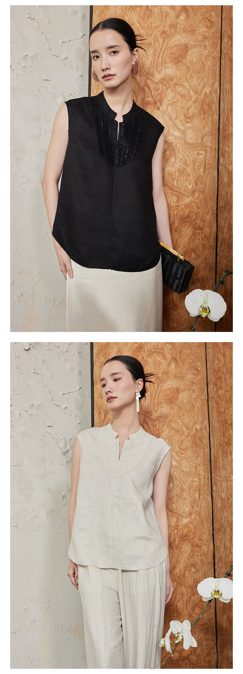 璞宿PUSU 流光 手工钉珠欧洲进口100%亚麻上衣 54403