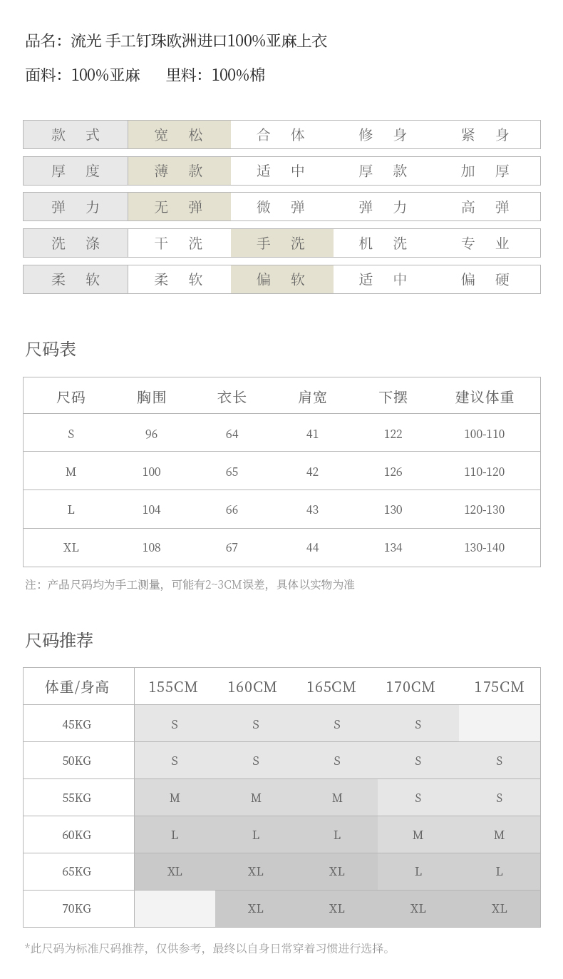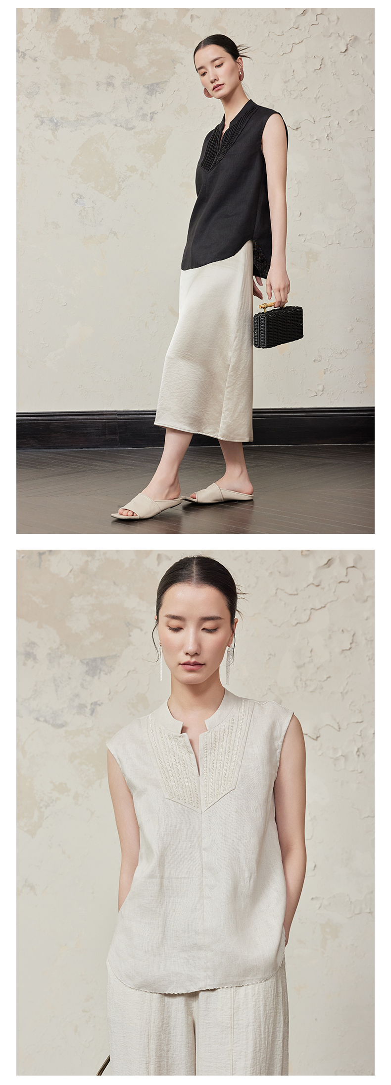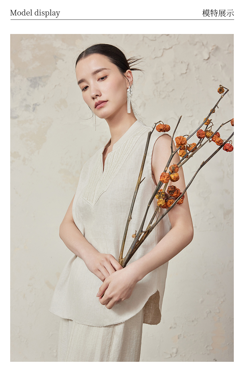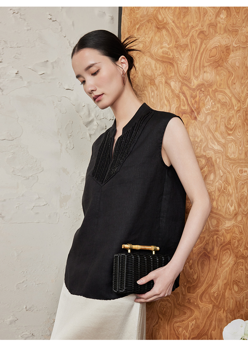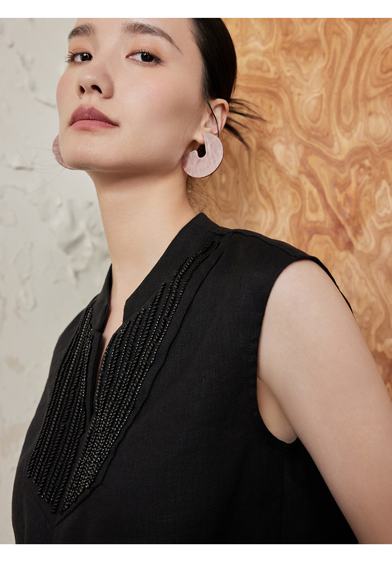 璞宿PUSU 流光 手工钉珠欧洲进口100%亚麻上衣 54403