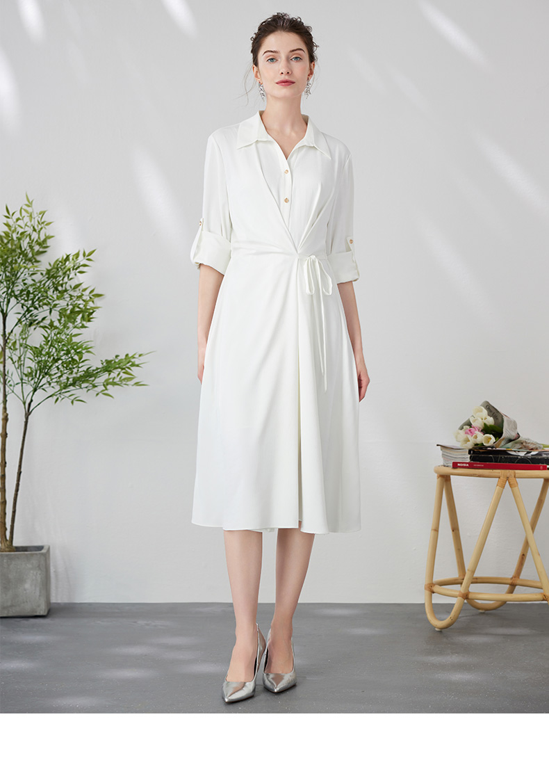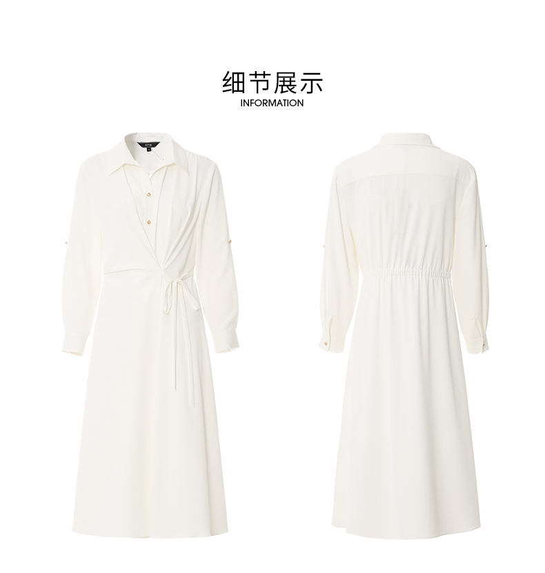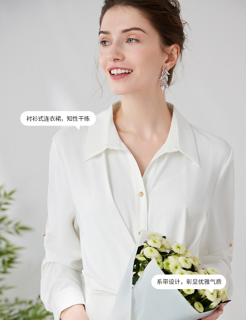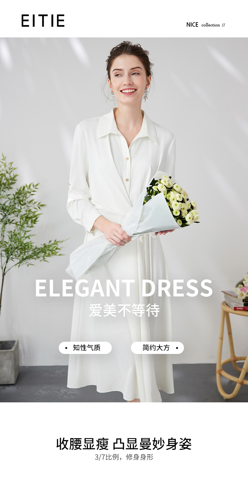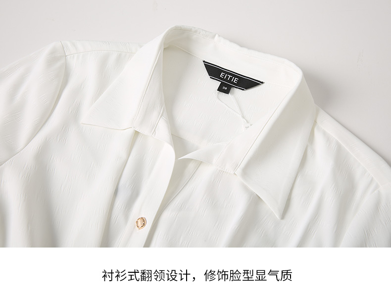 EITIE爱特爱气质通勤简约大气宽松系带收腰白色衬衫连衣裙24新款A2407303