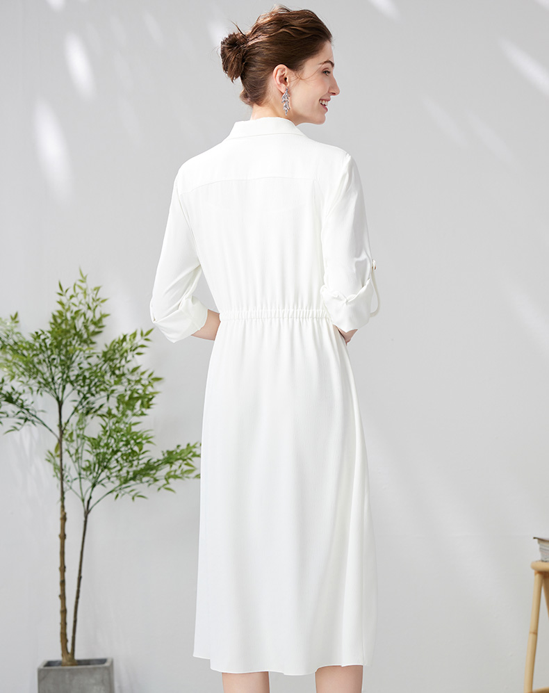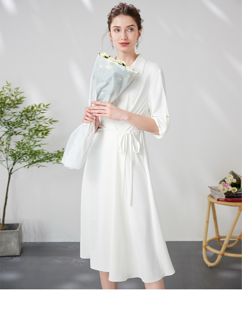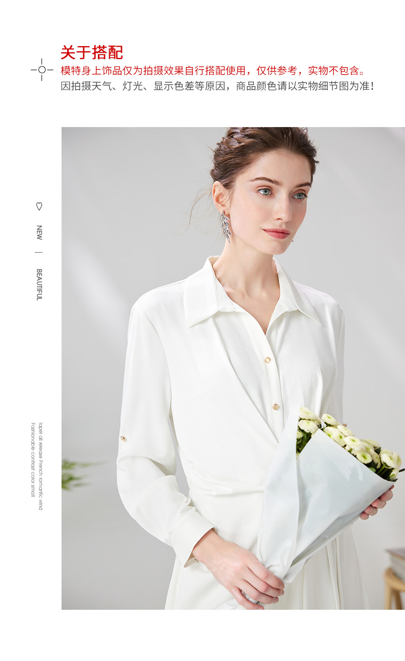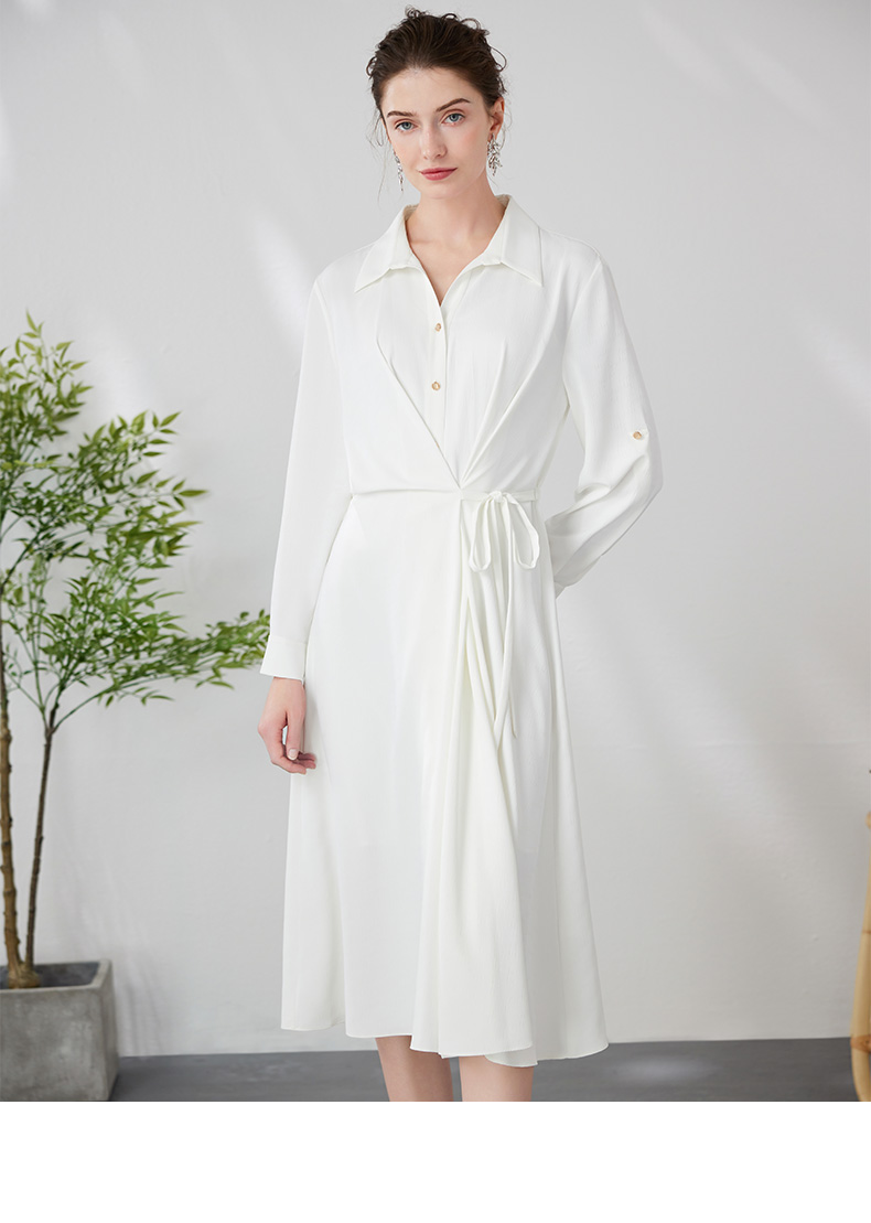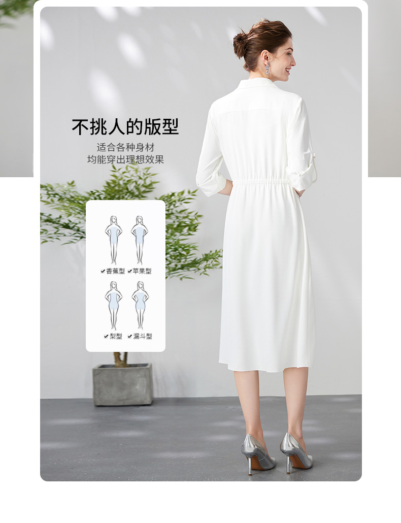 EITIE爱特爱气质通勤简约大气宽松系带收腰白色衬衫连衣裙24新款A2407303