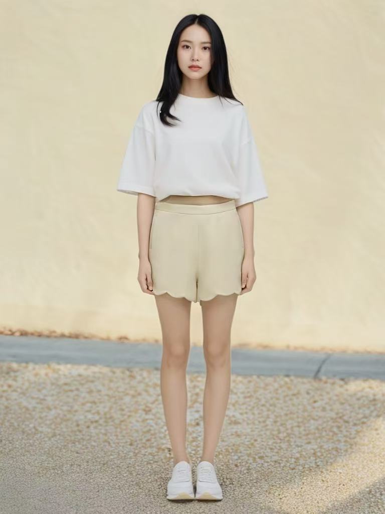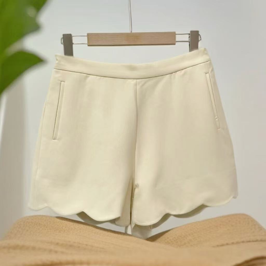 7.26秒杀~淡黄波浪花边侧拉链短裤-喜出