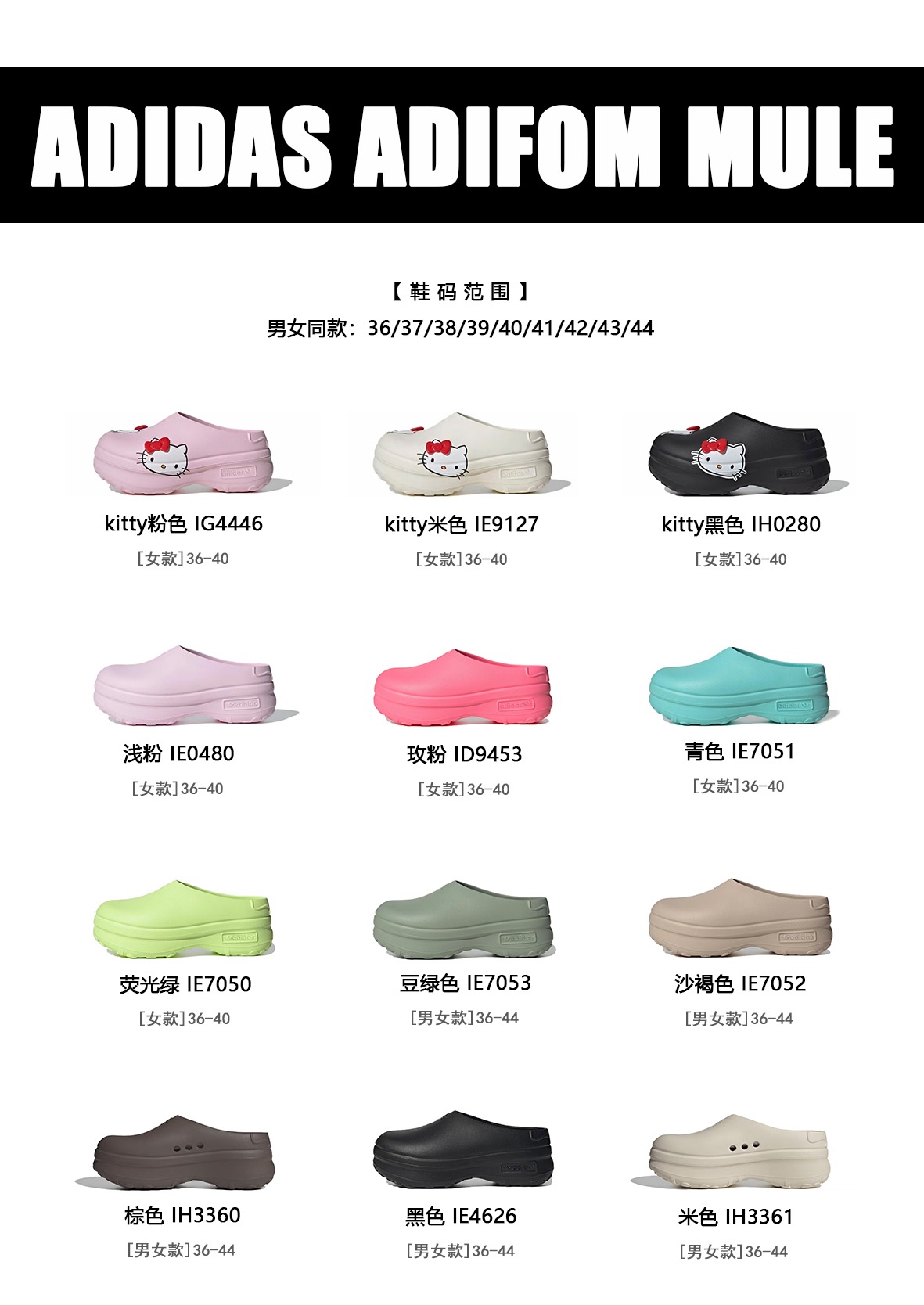 阿迪爆款厨师鞋𝟗色➕𝟑色联名凯蒂猫‼️