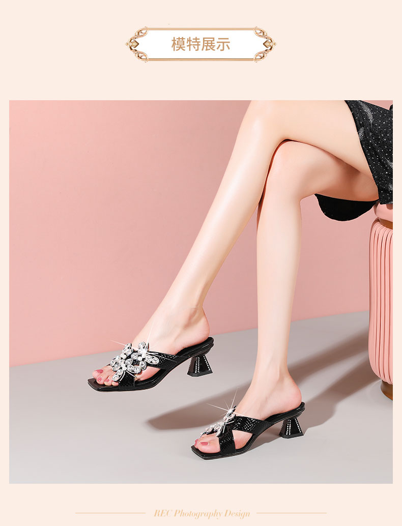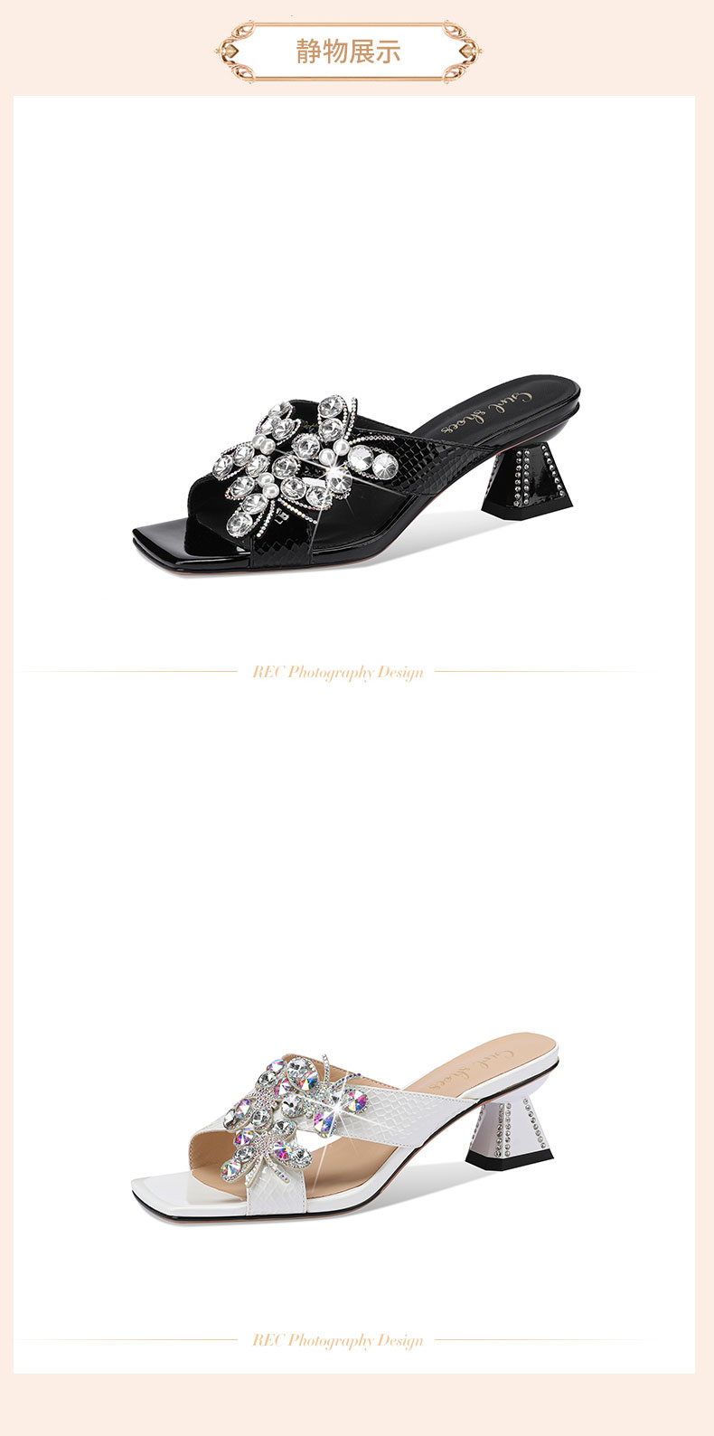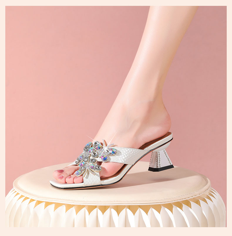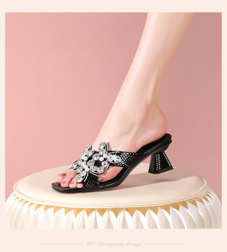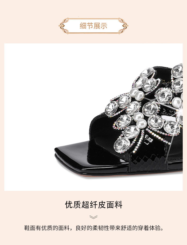 时尚个性,亮钻蝴蝶超迁皮中跟凉拖YSML-A089-185