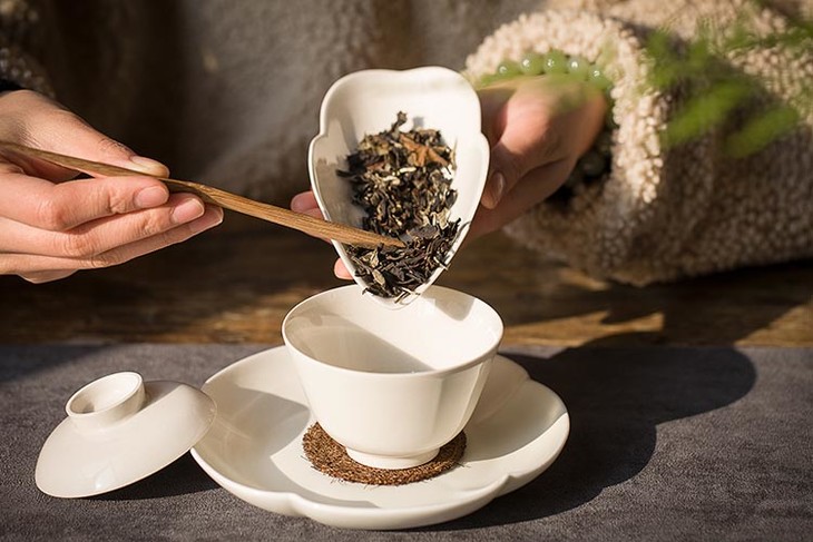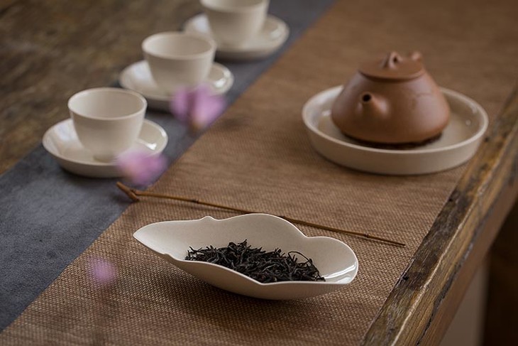 陶瓷茶则,放置茶席一侧,自有一番独特的意境。