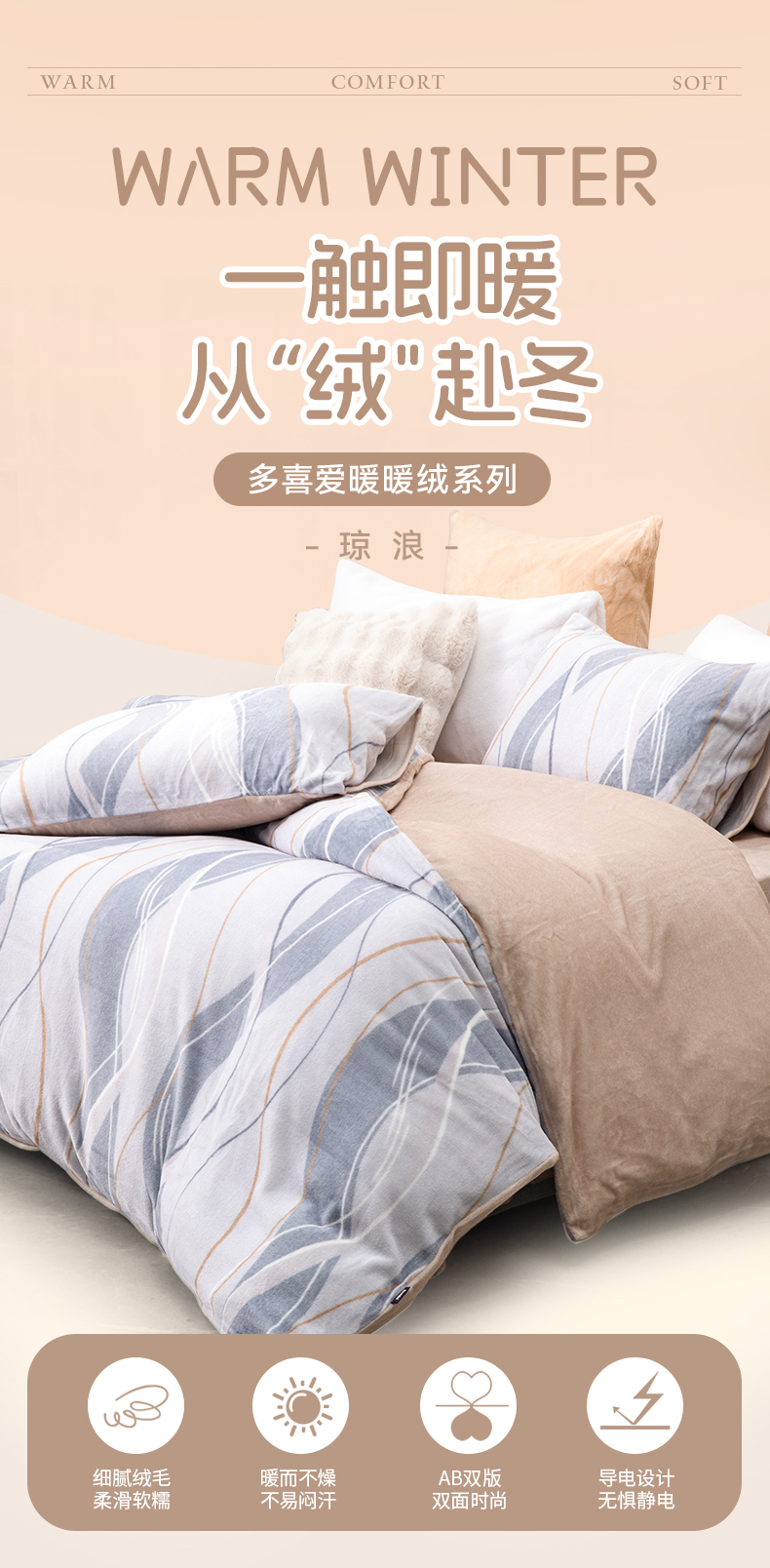 暖暖绒保暖四件套 琼浪【升级加厚】【AA级透气】【导电设计】【升温率43%】【可水洗机洗】柔滑软糯 加重加厚 不掉毛 双面设计