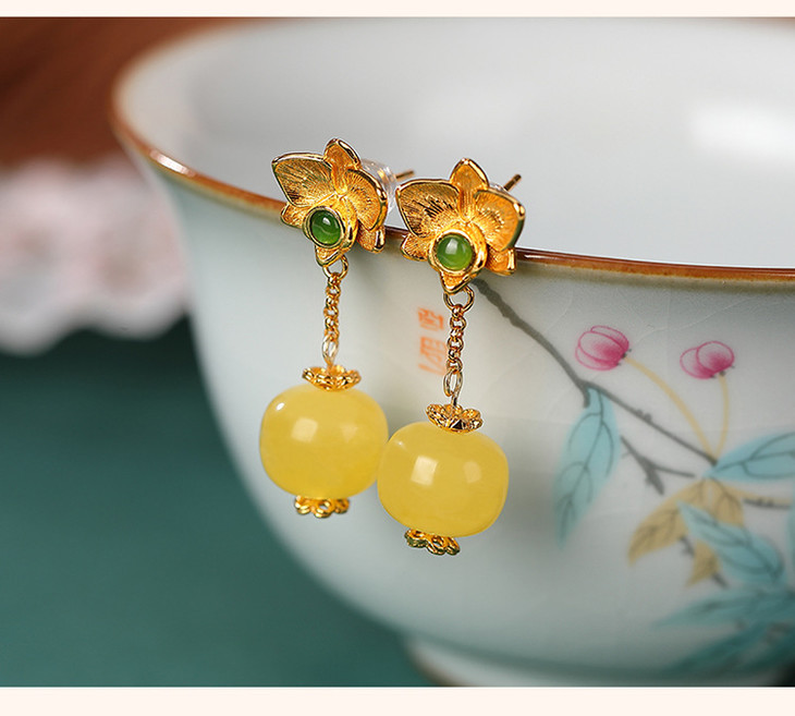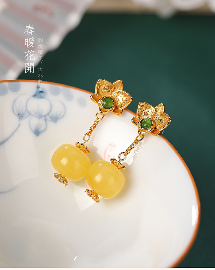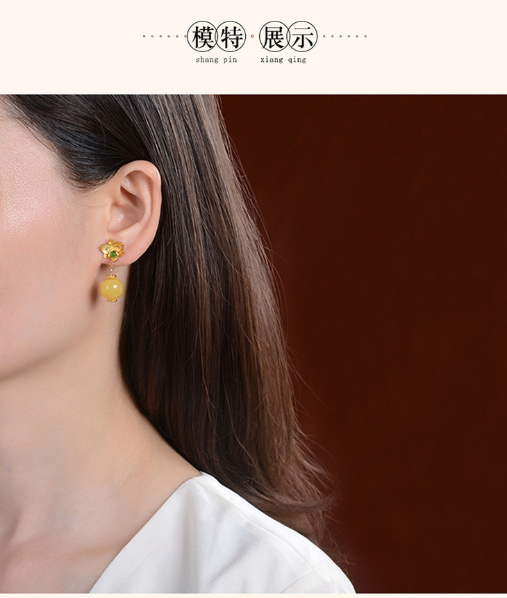 CWSS新款复古个性莲花S925纯银镀金蜜蜡耳坠