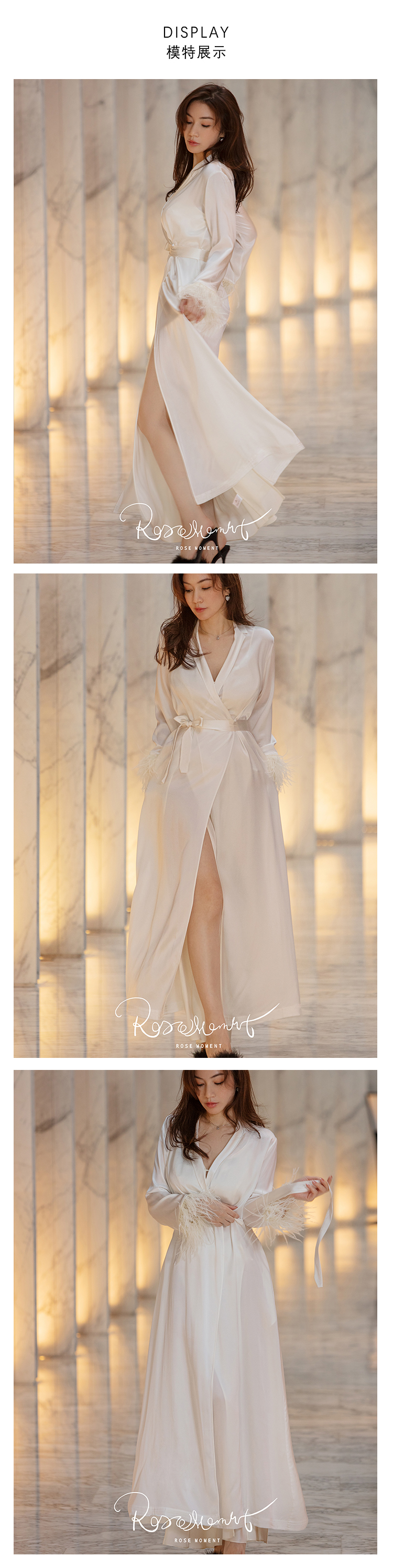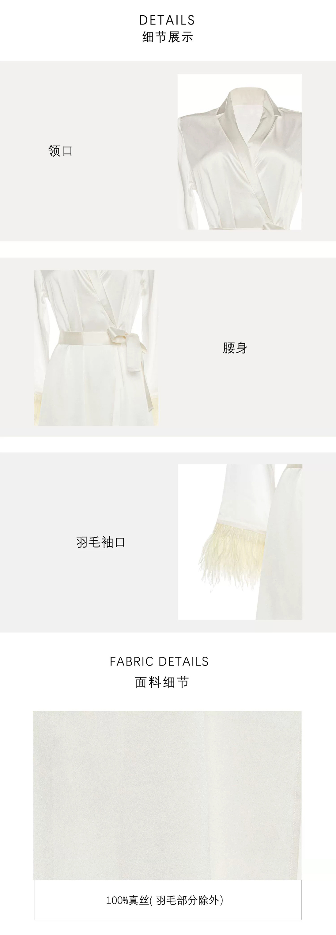 法式极简西装领真丝驼鸟毛袖长袍度假必备 T422017-1