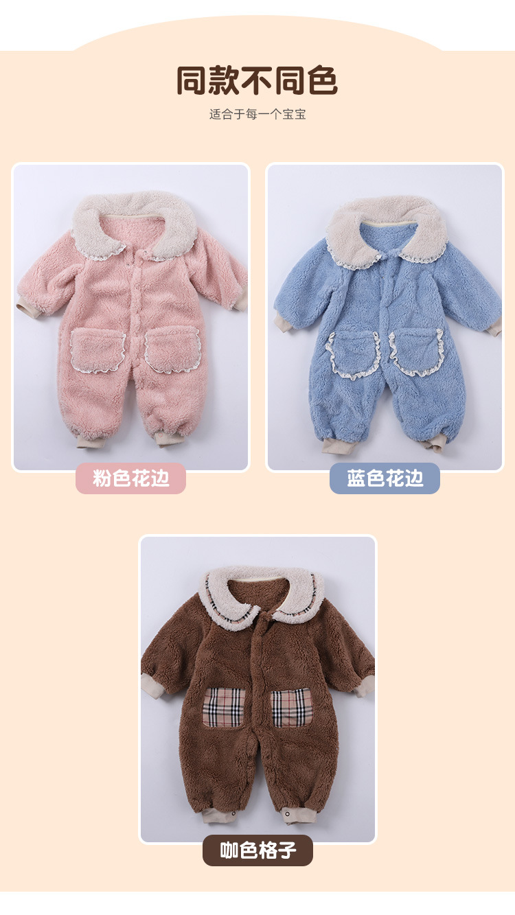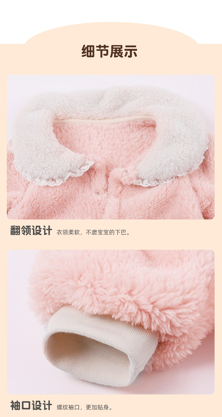 【珊瑚绒连体衣!亲肤柔软】婴儿爬服宝宝连体衣,花边宽松棉服冬季加厚外出服婴童哈衣服,精致美观 蕾丝花边点缀更洋气 hh