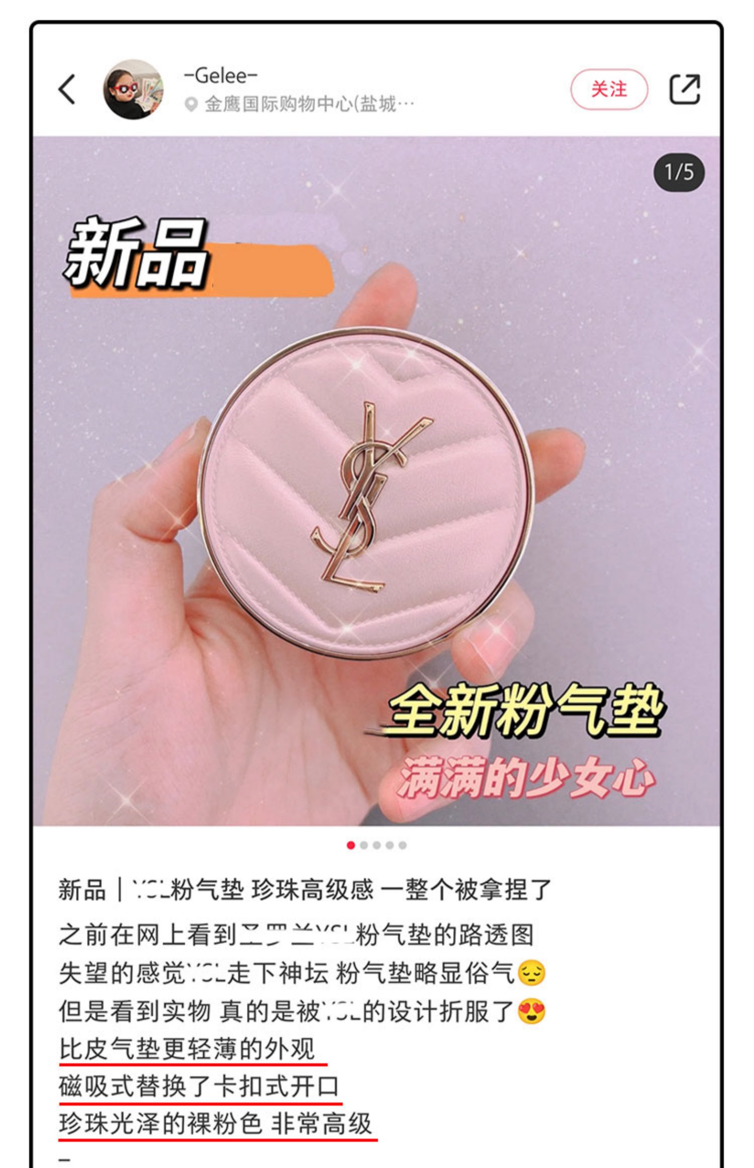 专柜620 YSL粉色皮革气垫干皮水光肌 10/20/BR20色号 替芯/正装