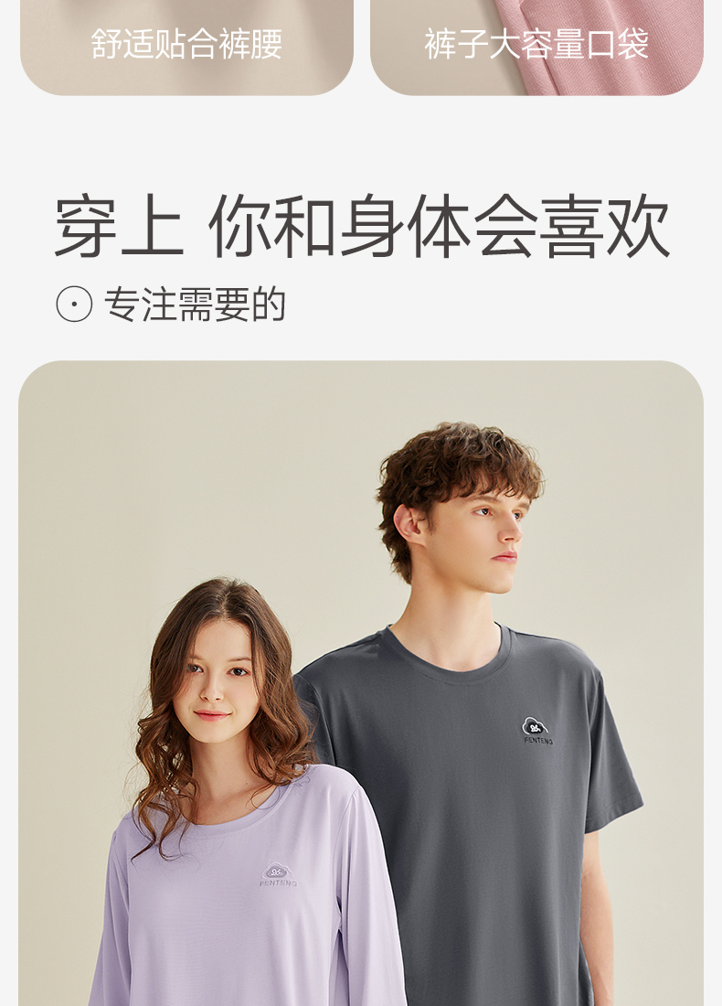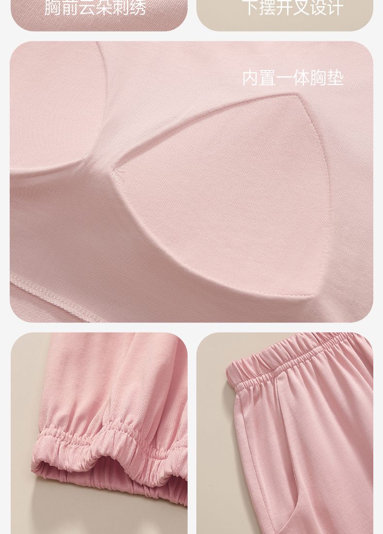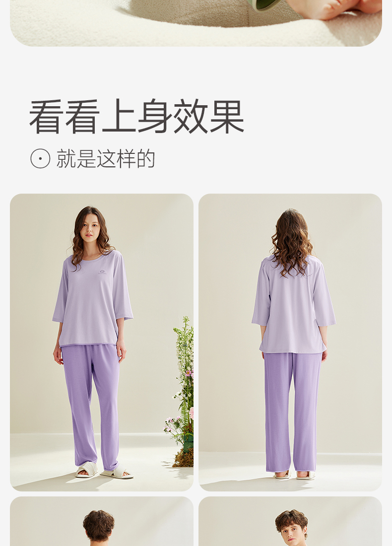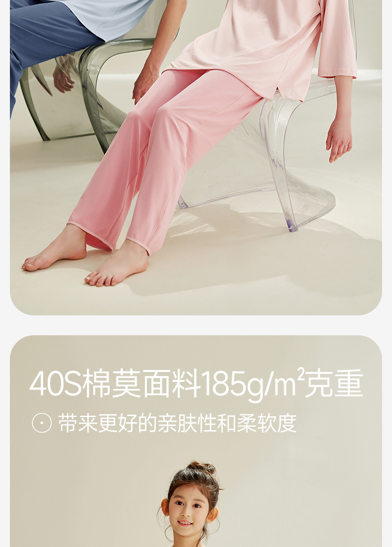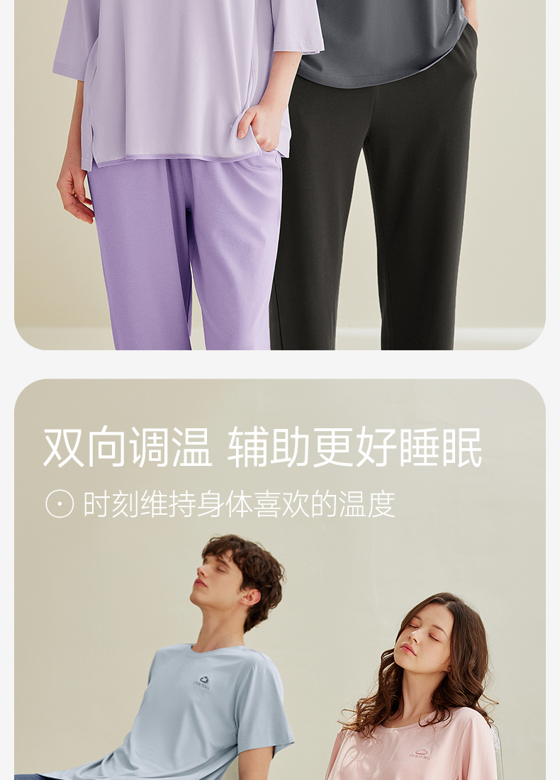 芬腾【26°恒温带胸垫】睡衣女夏季情侣莫代尔棉男亲子儿童家居服