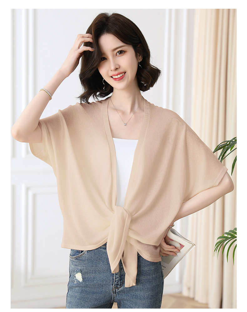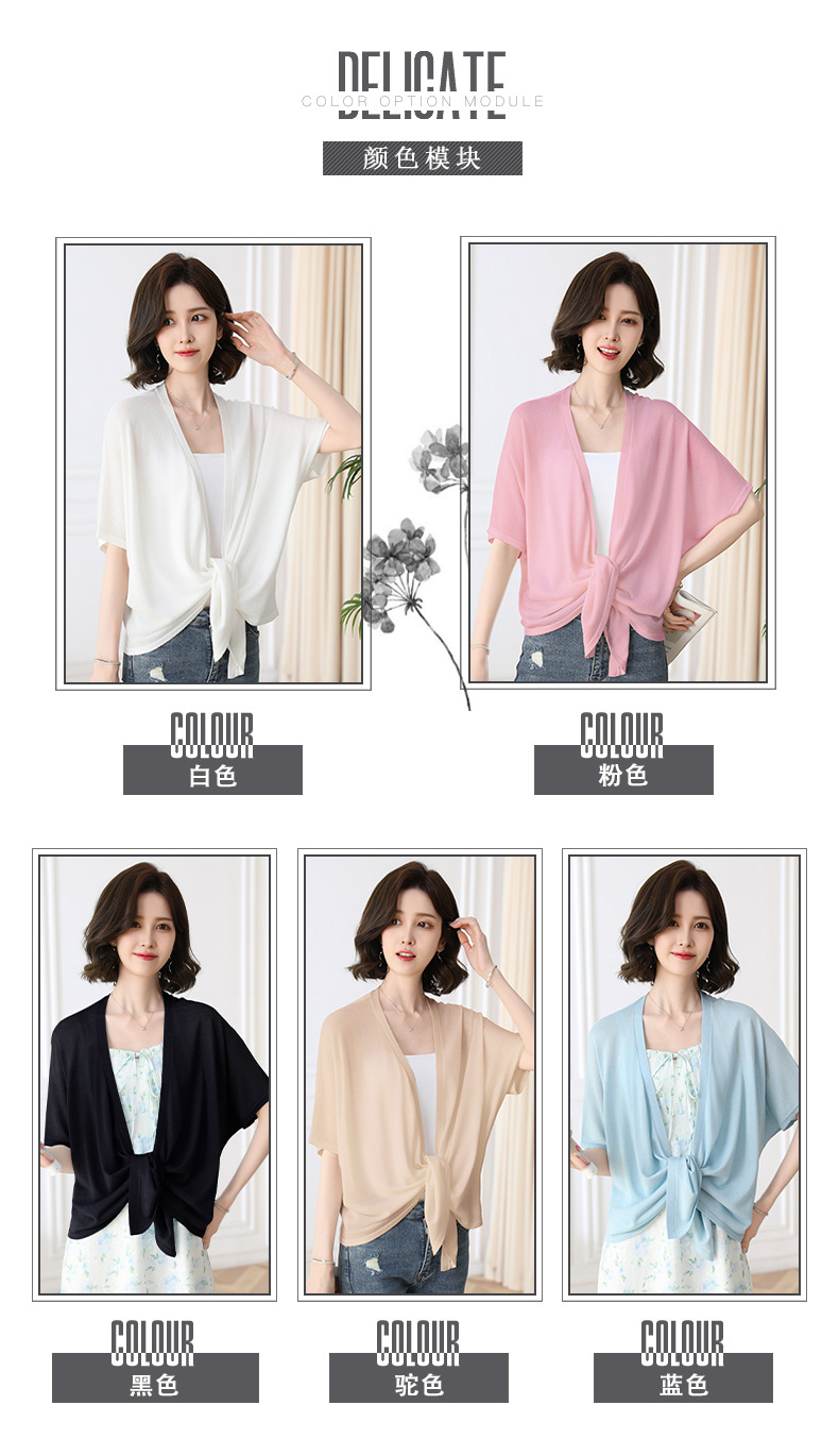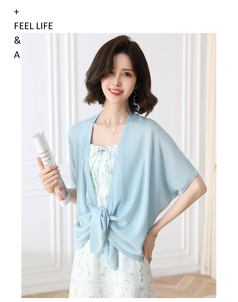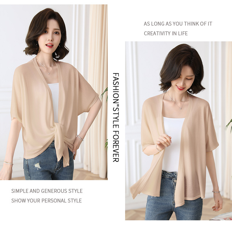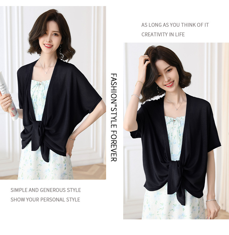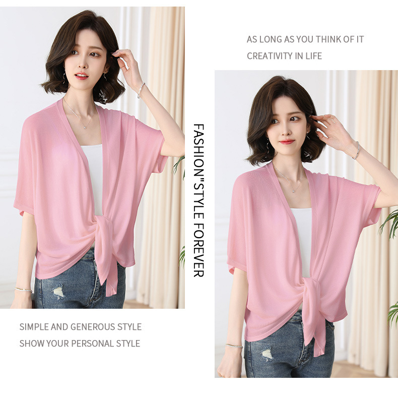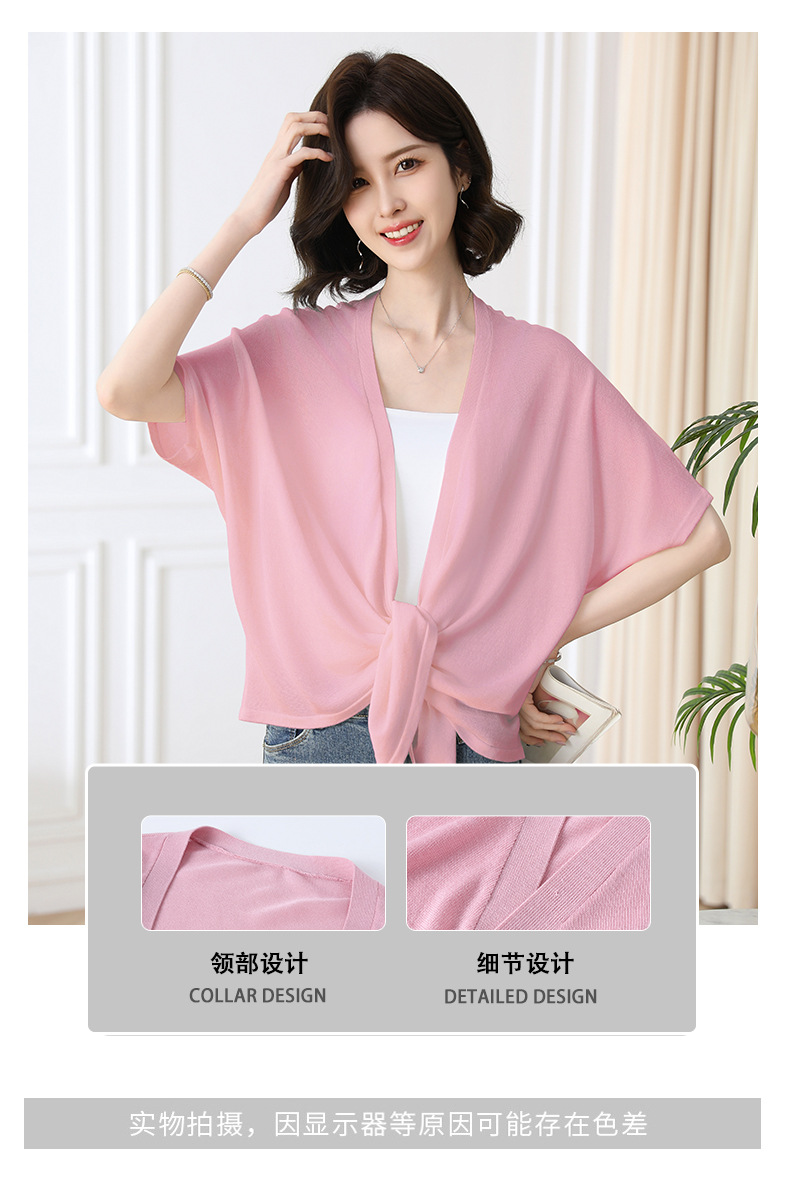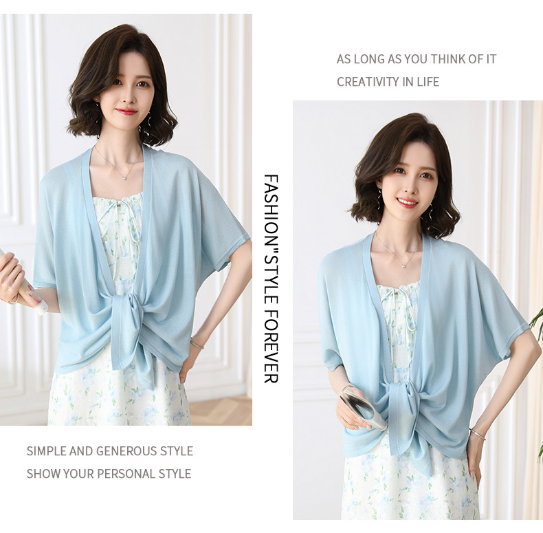 冰丝针织衫薄款下摆打结防晒开衫,中袖空调披肩上衣CC-60-513