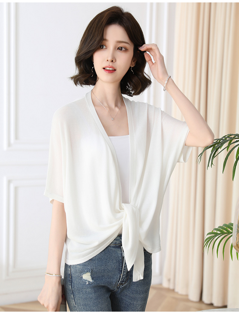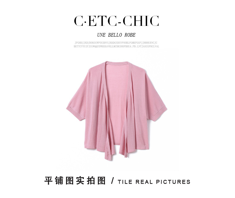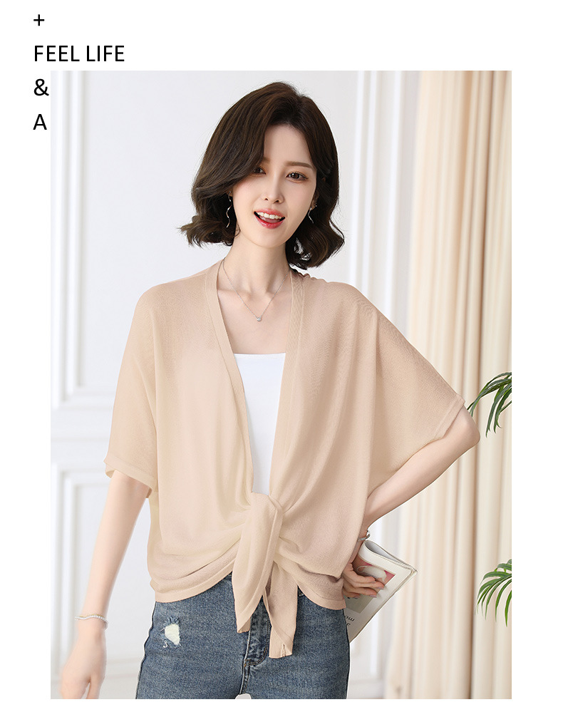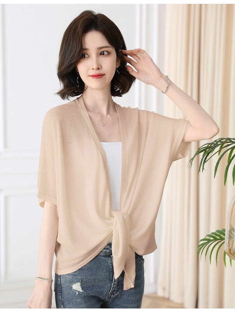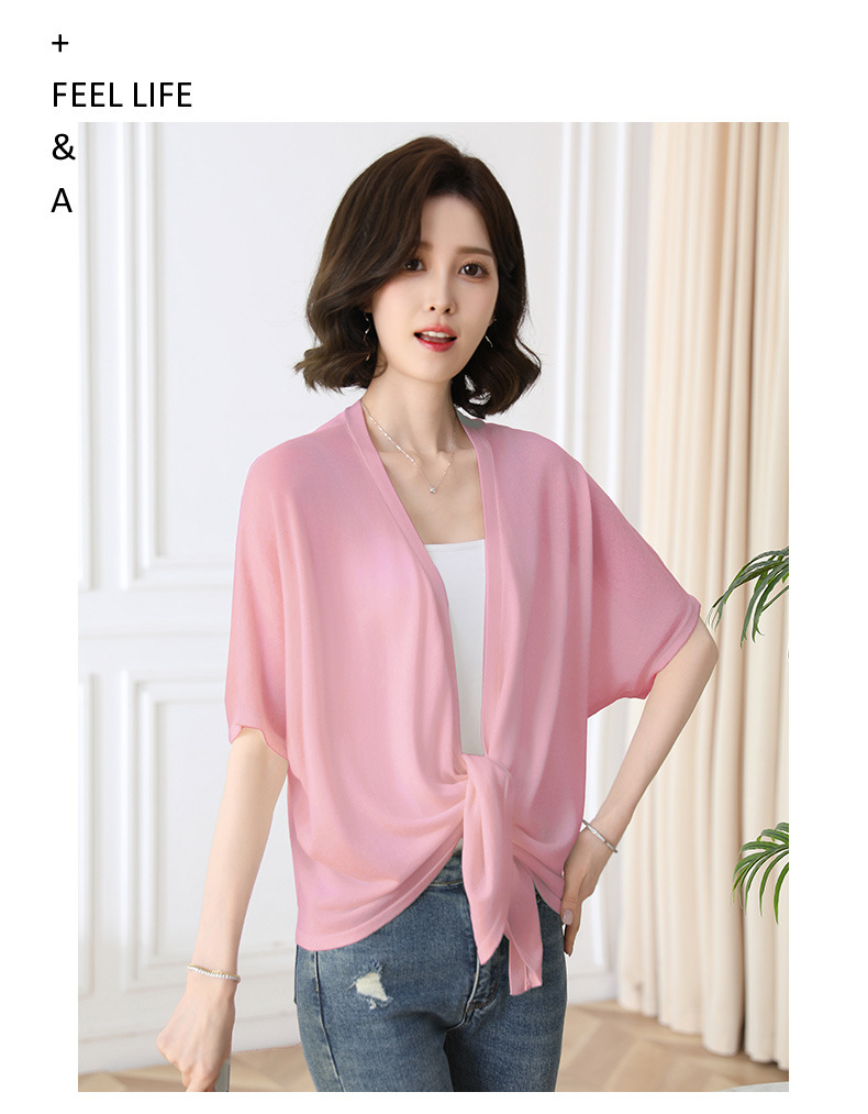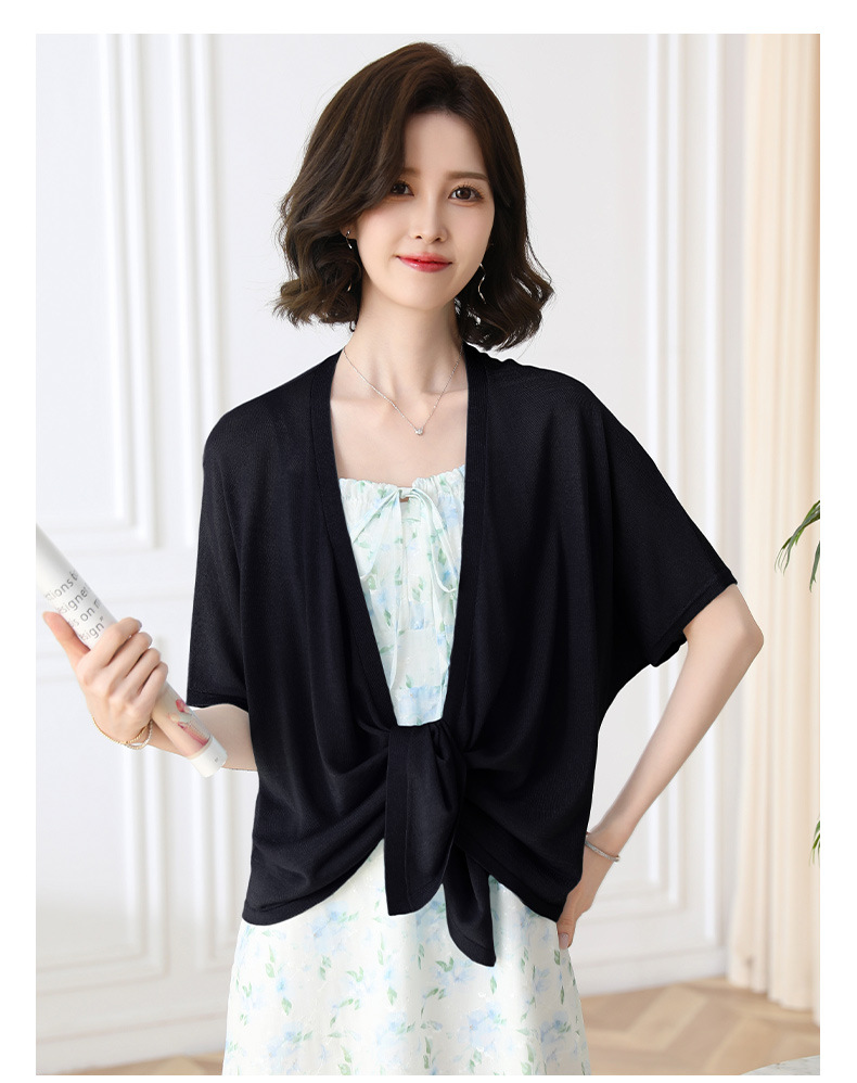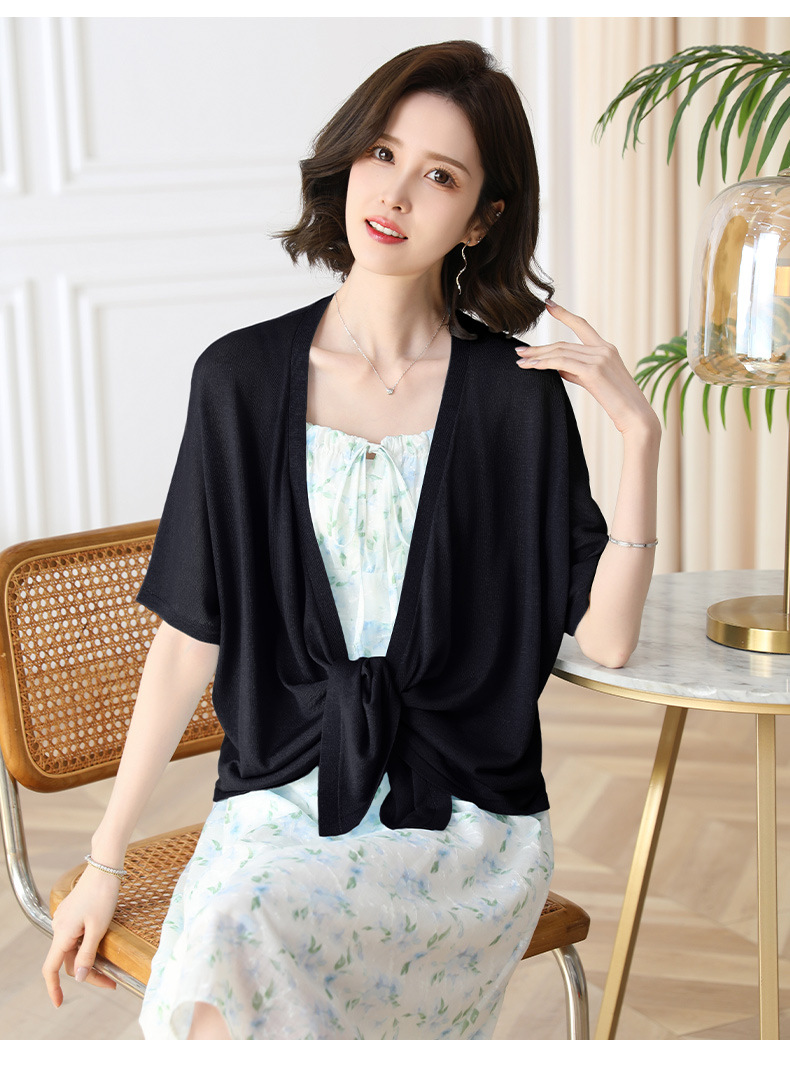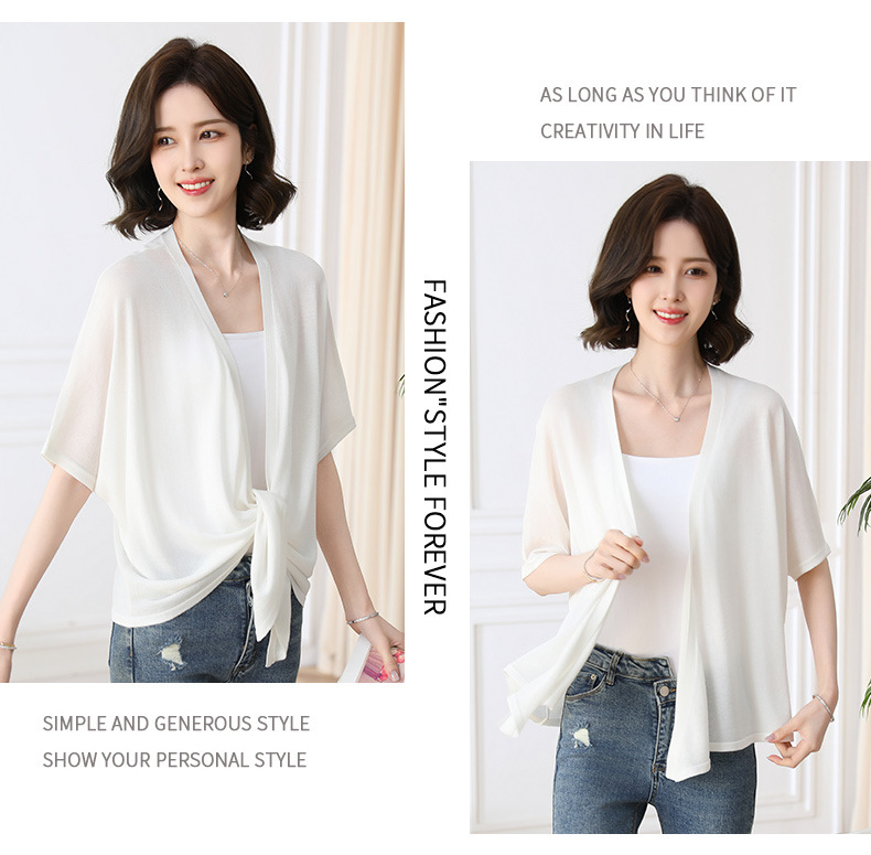 冰丝针织衫薄款下摆打结防晒开衫,中袖空调披肩上衣CC-60-513
