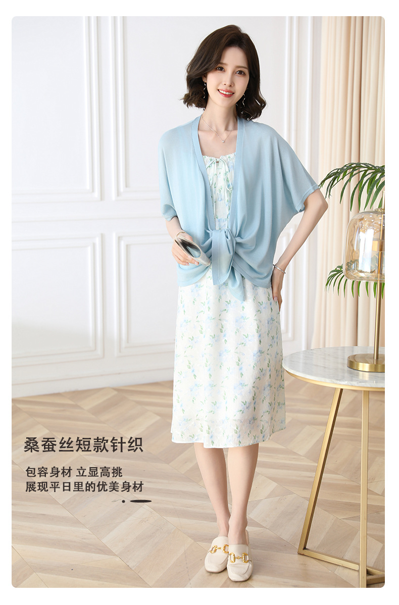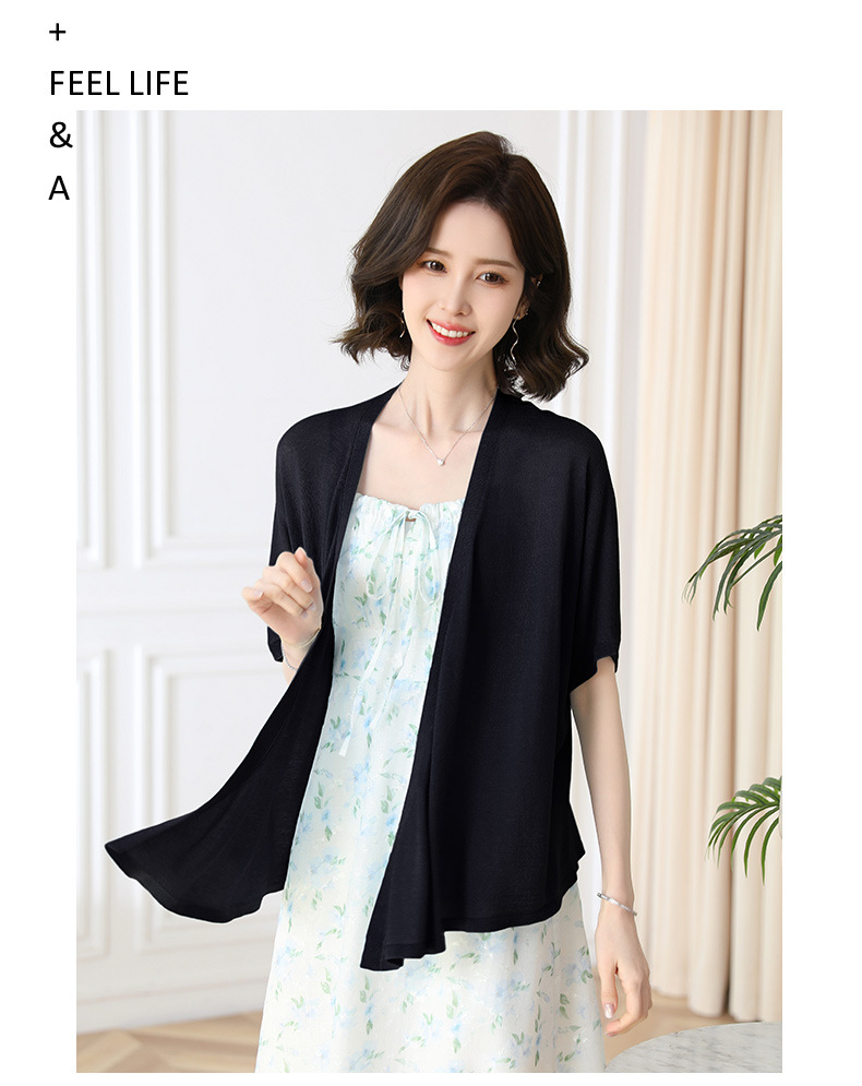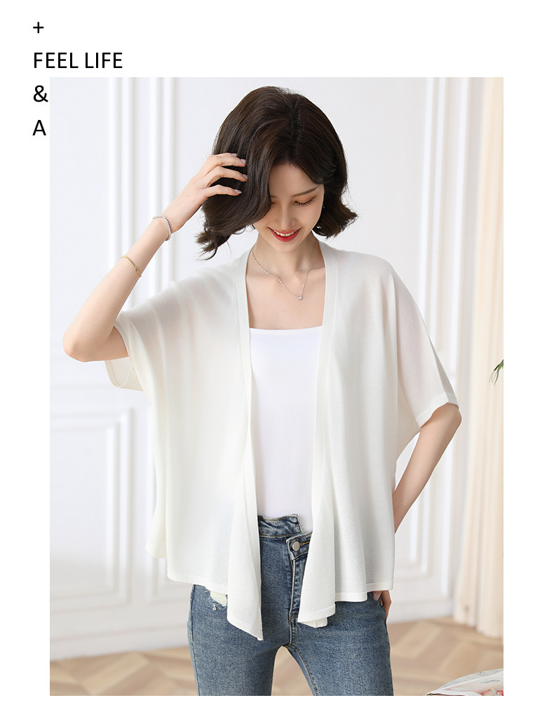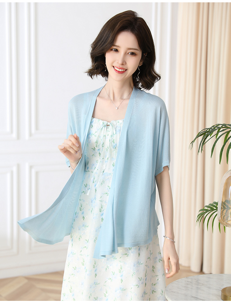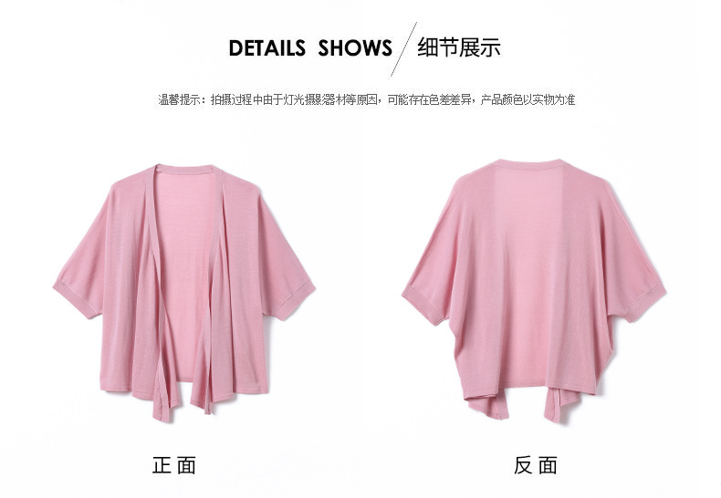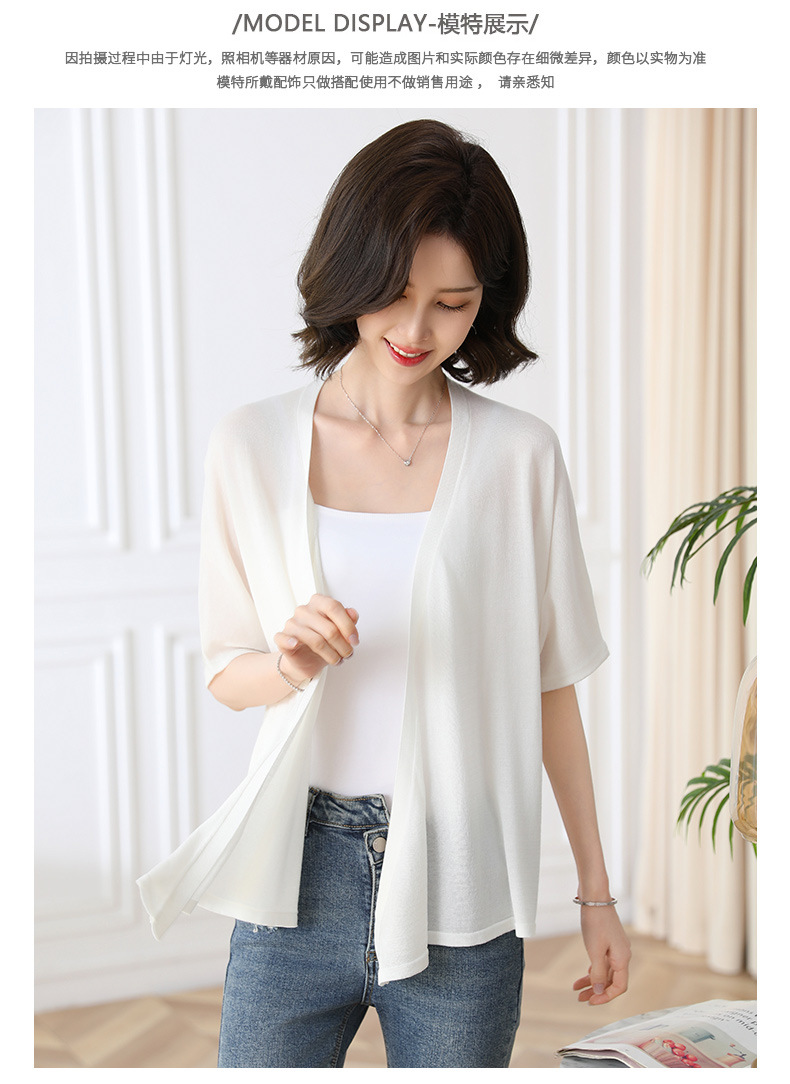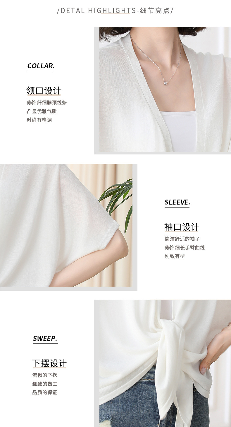 冰丝针织衫薄款下摆打结防晒开衫,中袖空调披肩上衣CC-60-513