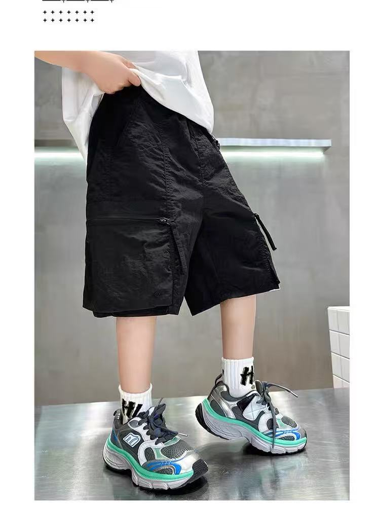 【孤品捡漏】G136男童黑色口袋休闲短裤-喜出