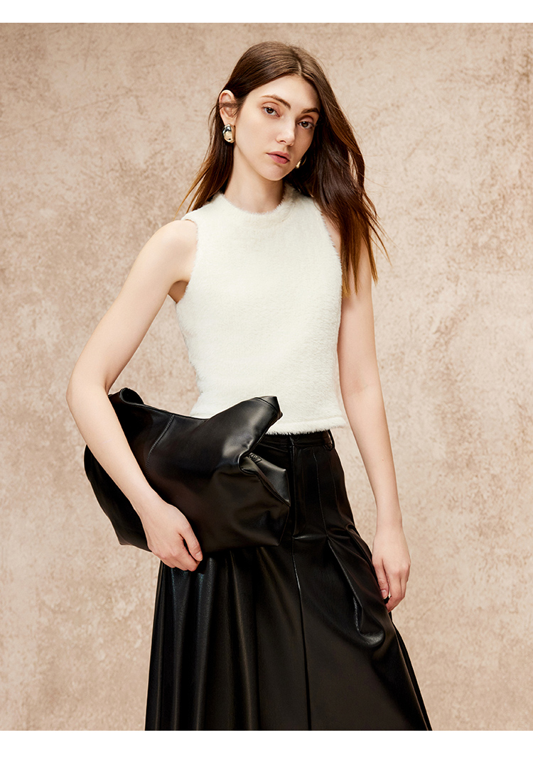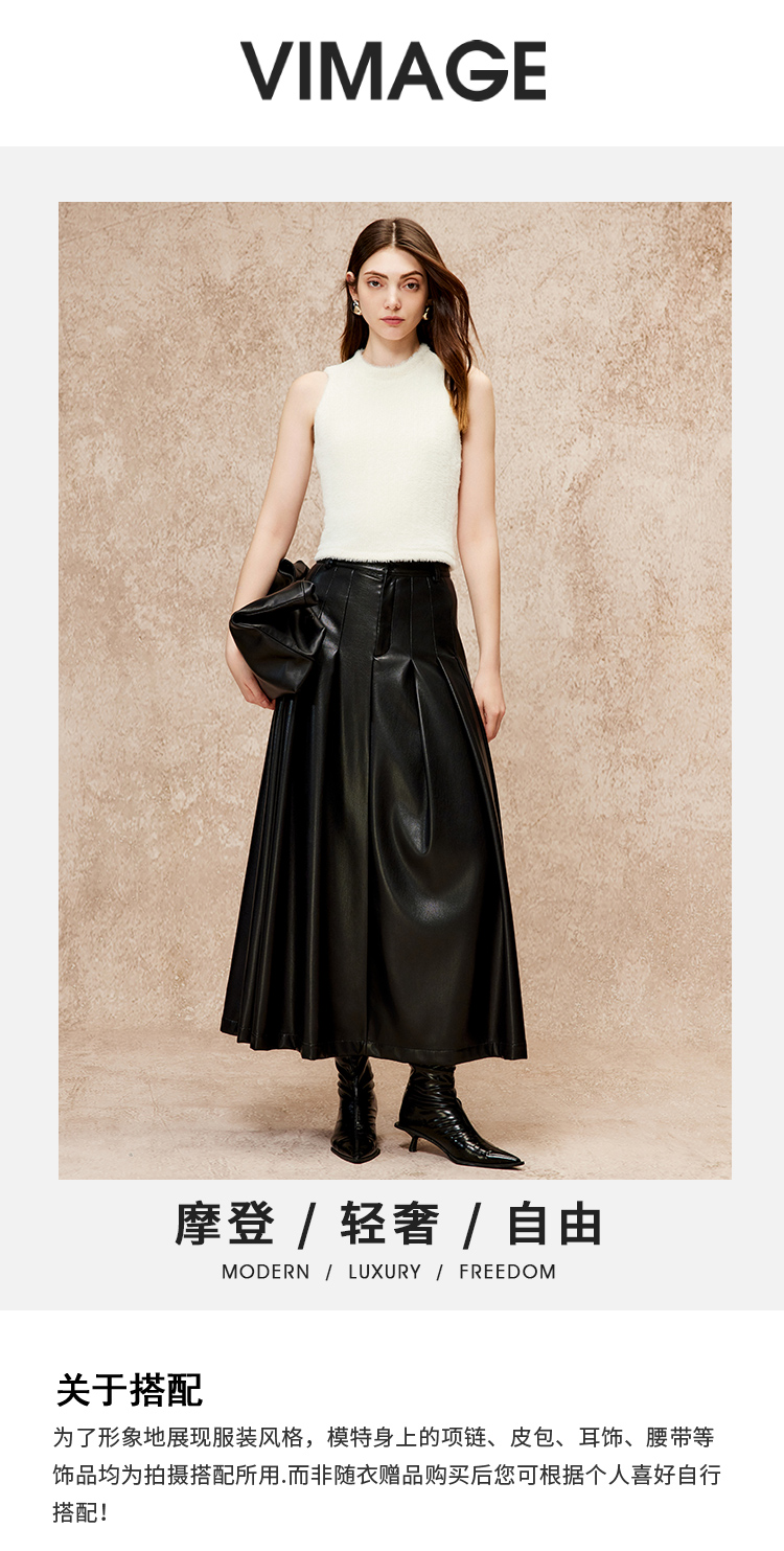VIMAGE纬漫纪气质小立领无袖修身百搭纯色背心上衣秋季新款V2213835