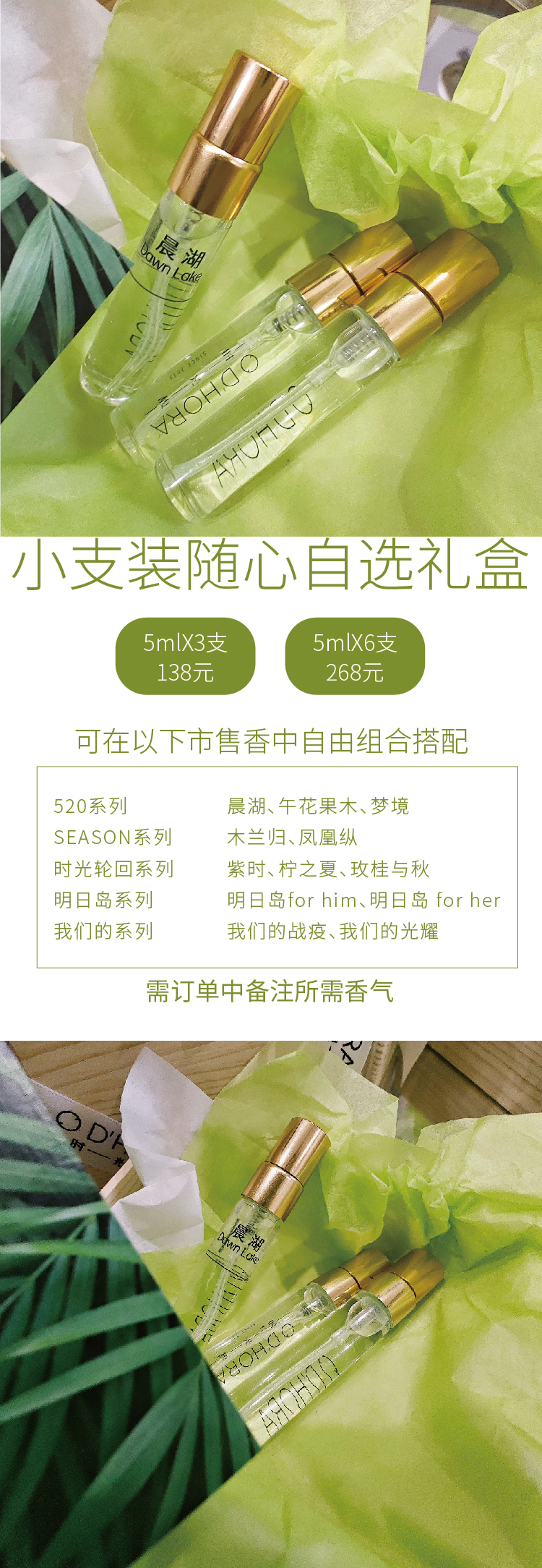 时光馥随心配香气体验木盒装5ml气味组合订单备注