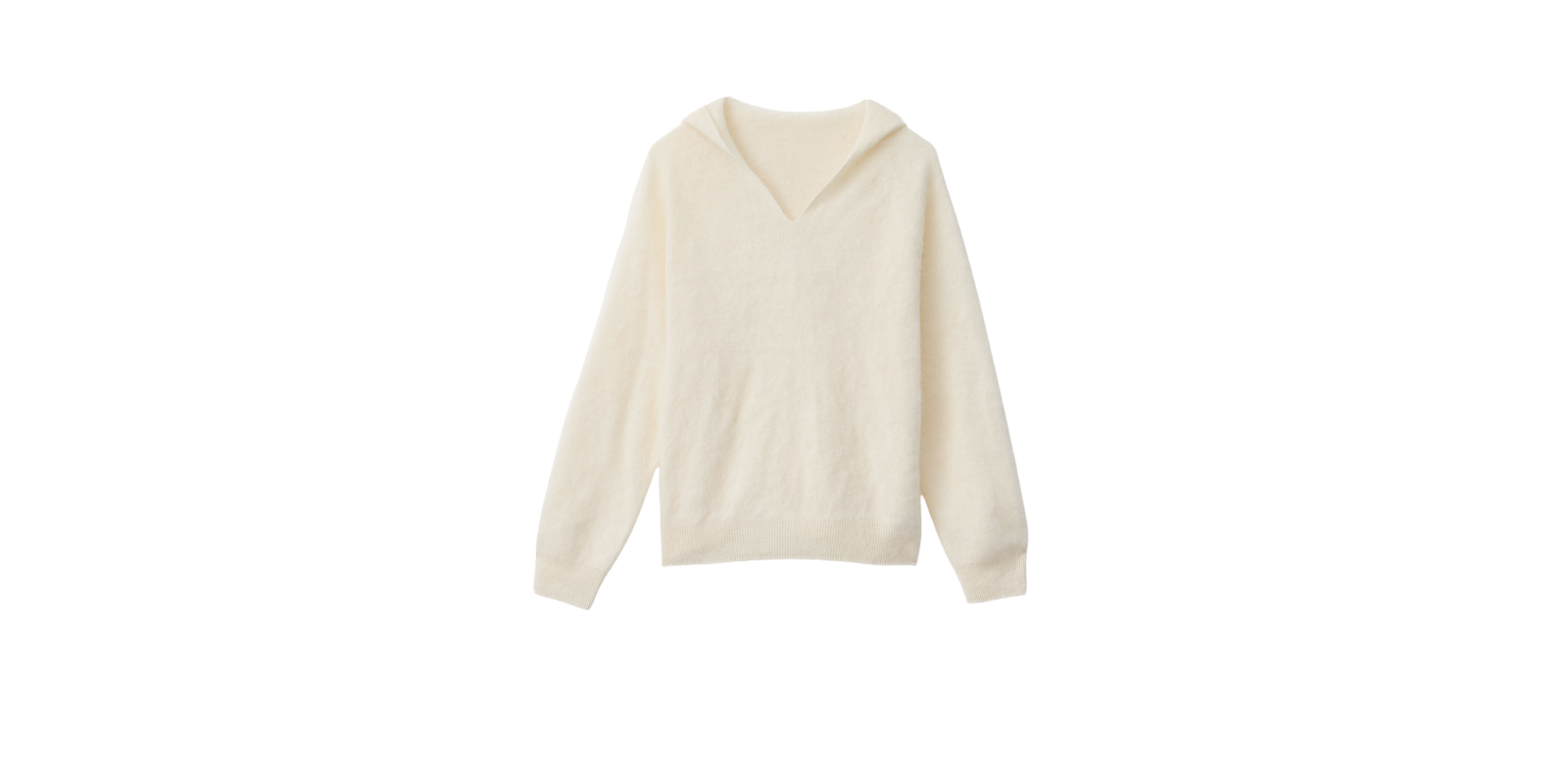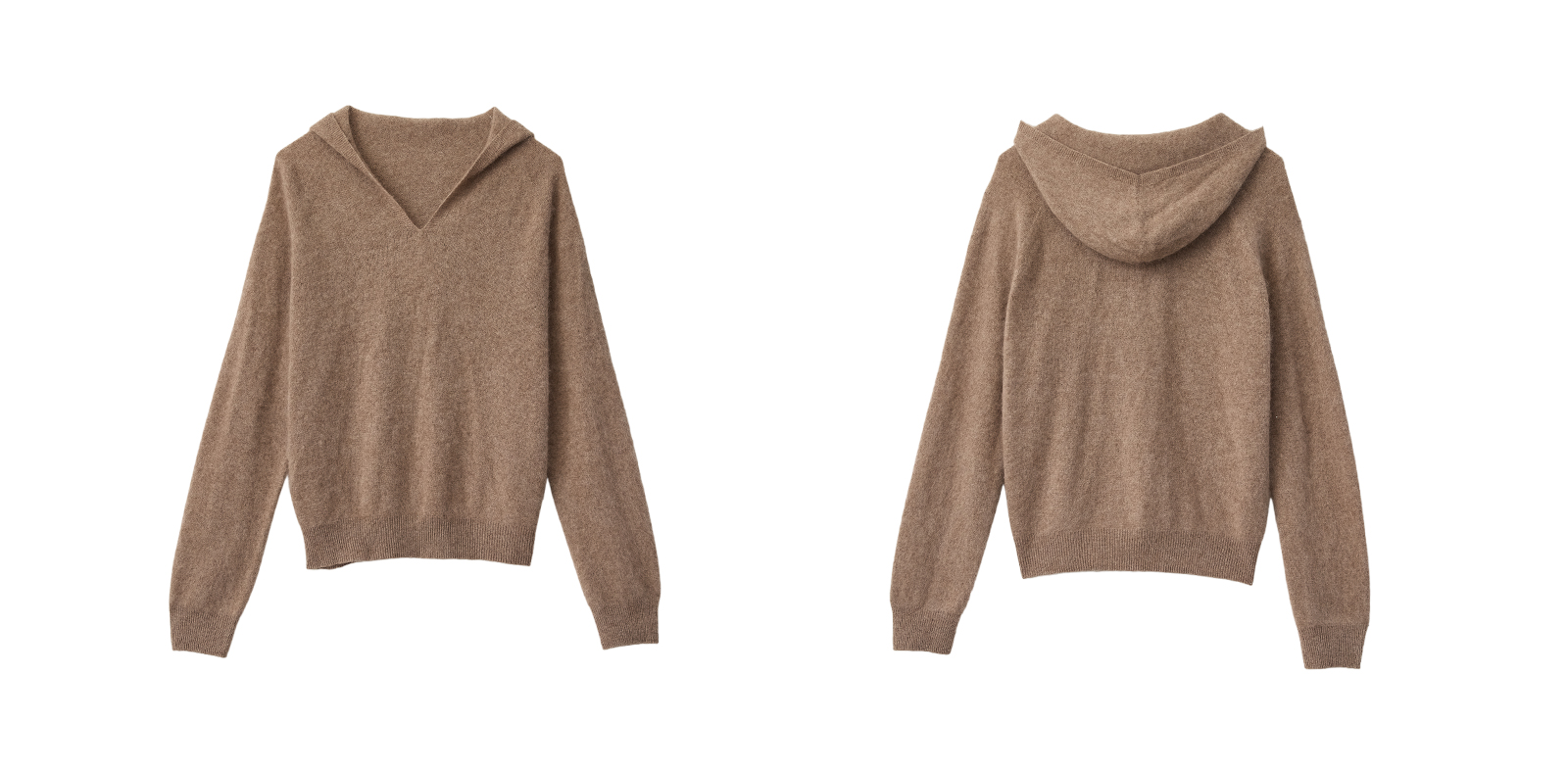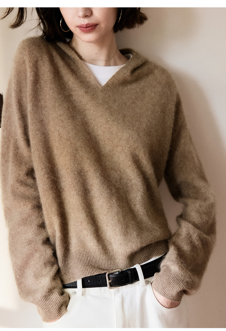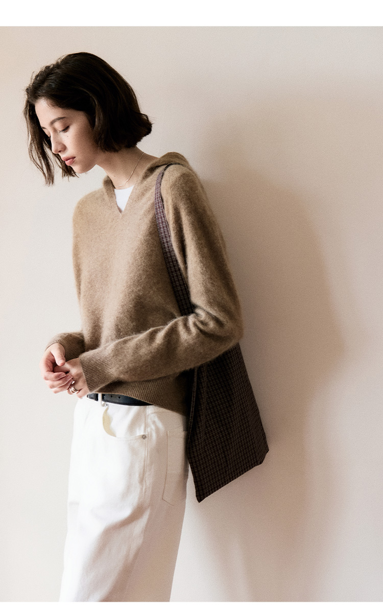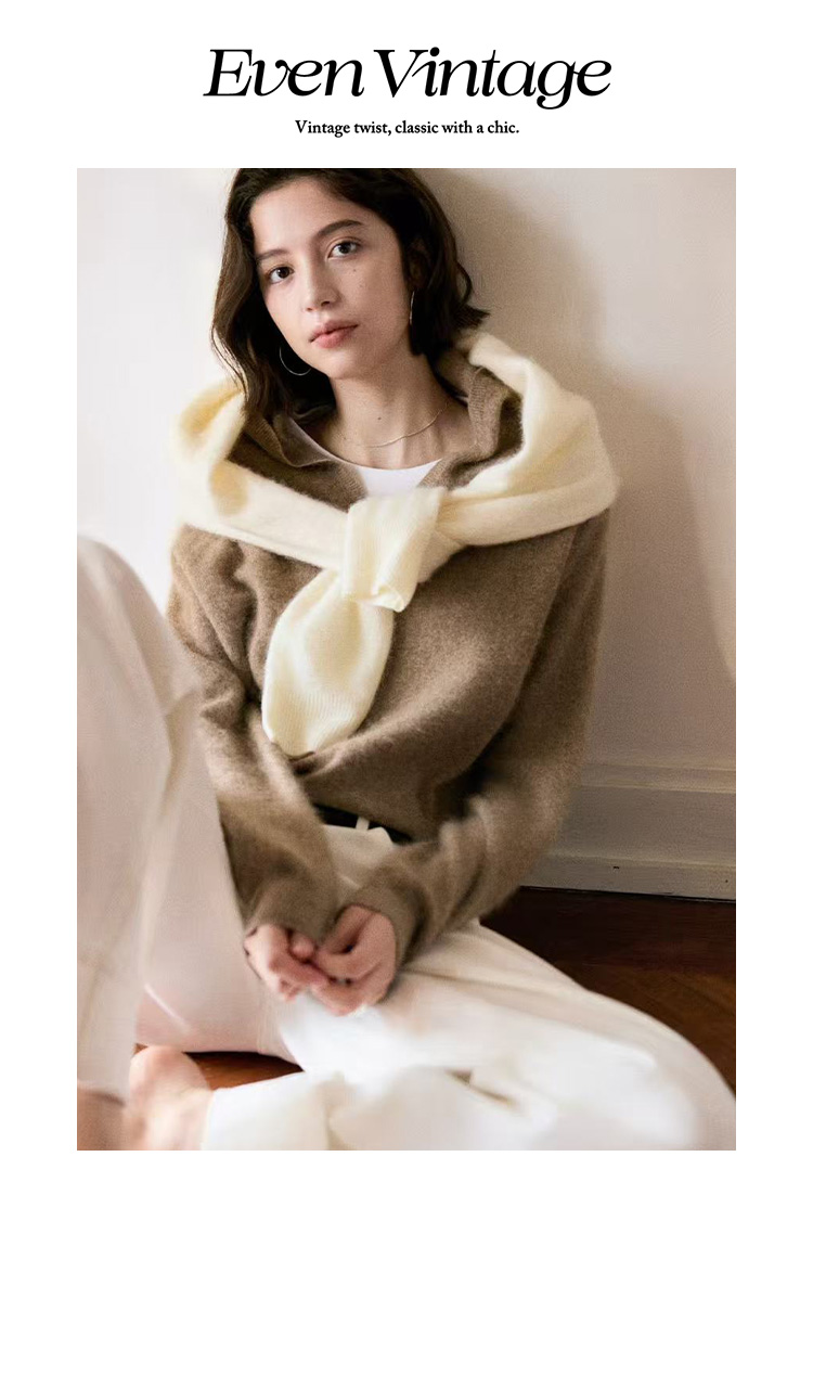 Even Vintage | 羊毛羊绒混纺 软糯温柔v领连帽套头针织毛衫