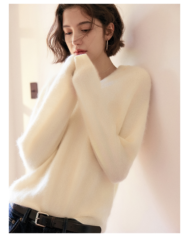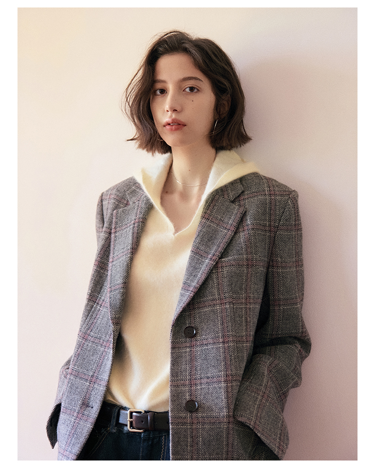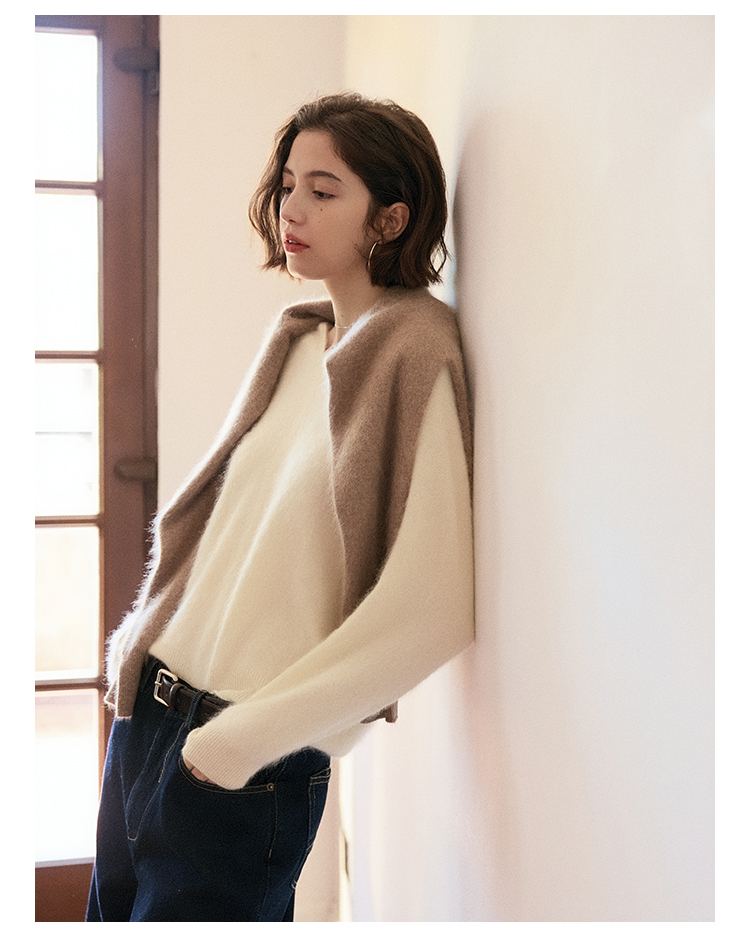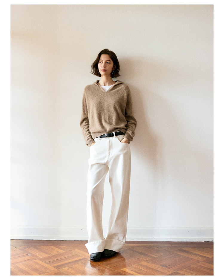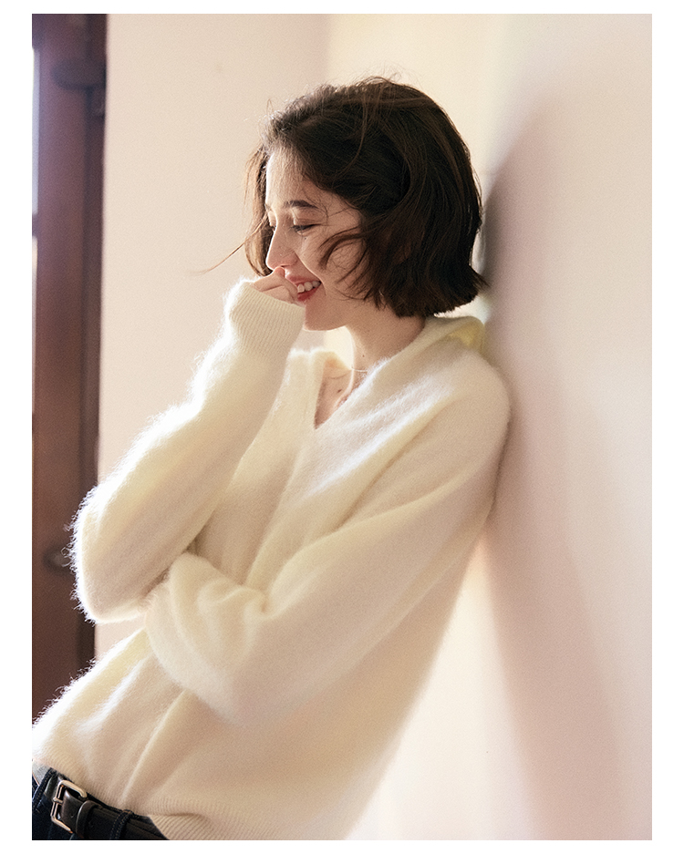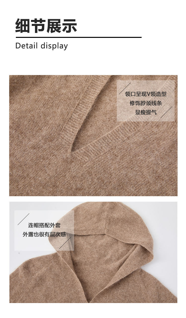 Even Vintage | 羊毛羊绒混纺 软糯温柔v领连帽套头针织毛衫