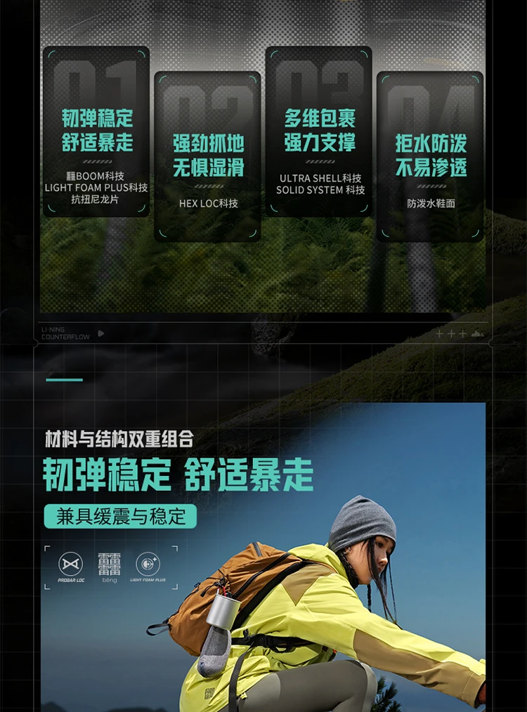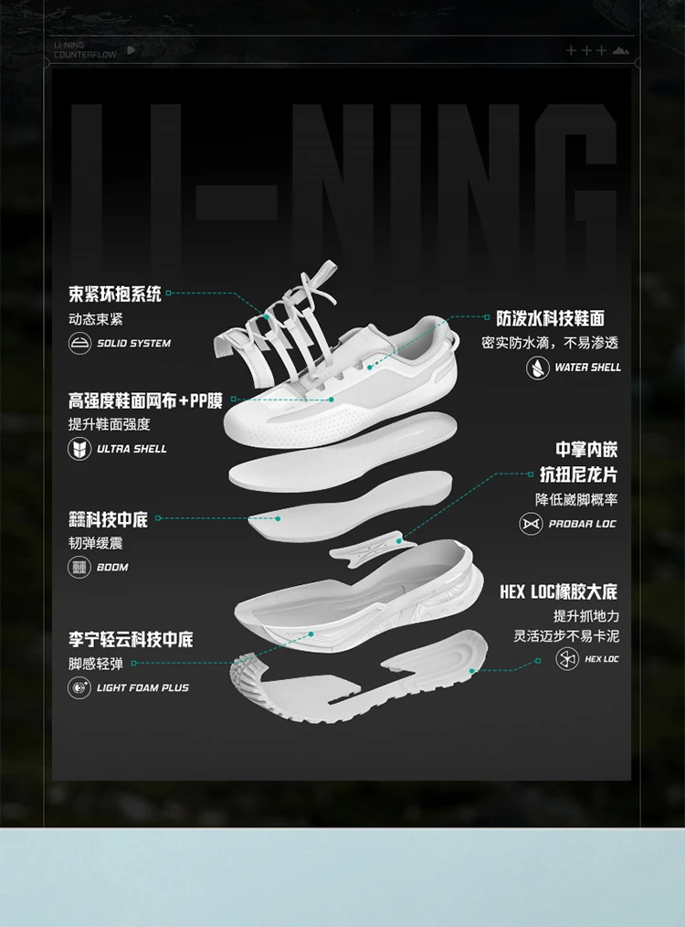 李宁户外CF溯行川男女同款轻量高回弹防泼水户外徒步鞋AHTV047