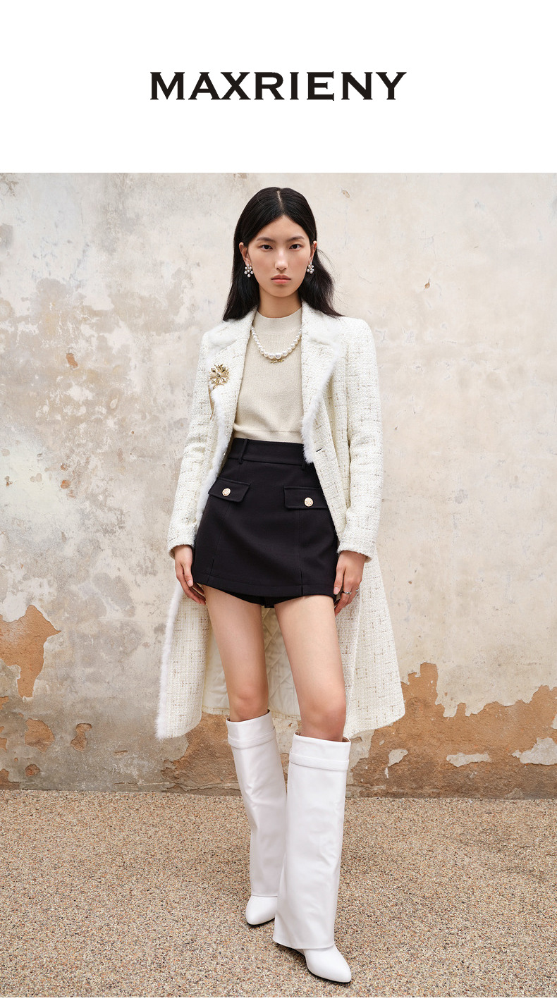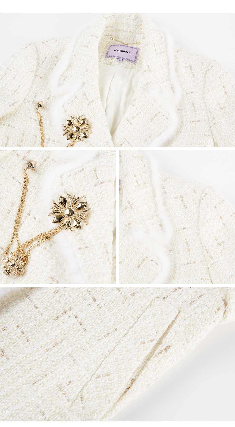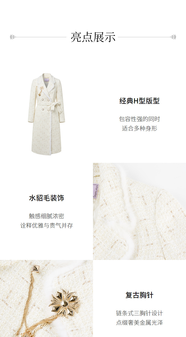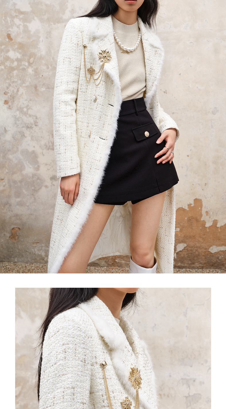 MAXRIENY小香风花纱大衣中长款2023冬季水貂毛外套(货号:MS88CT534)