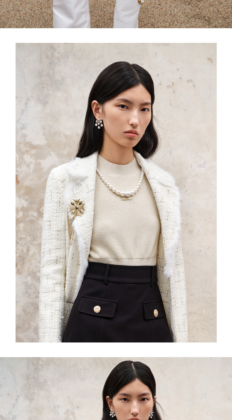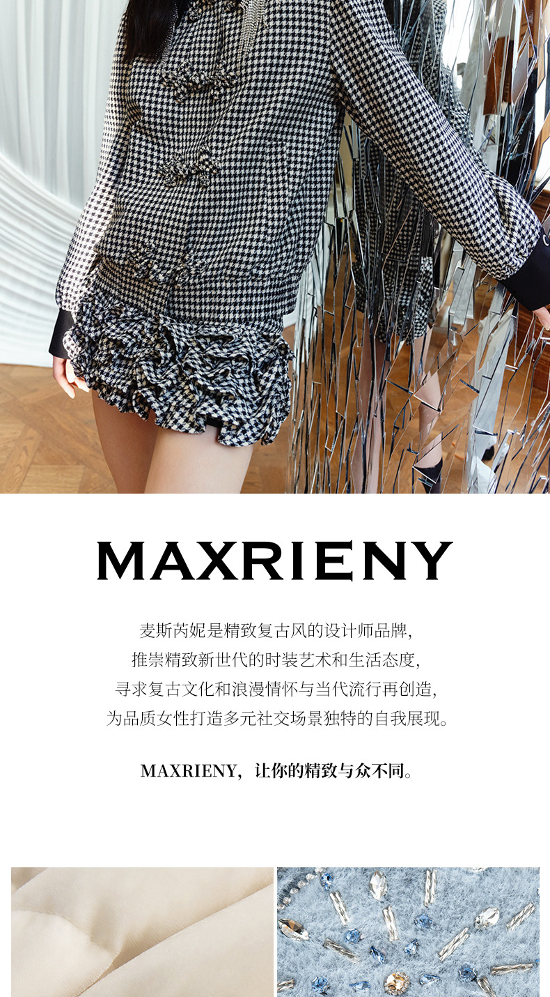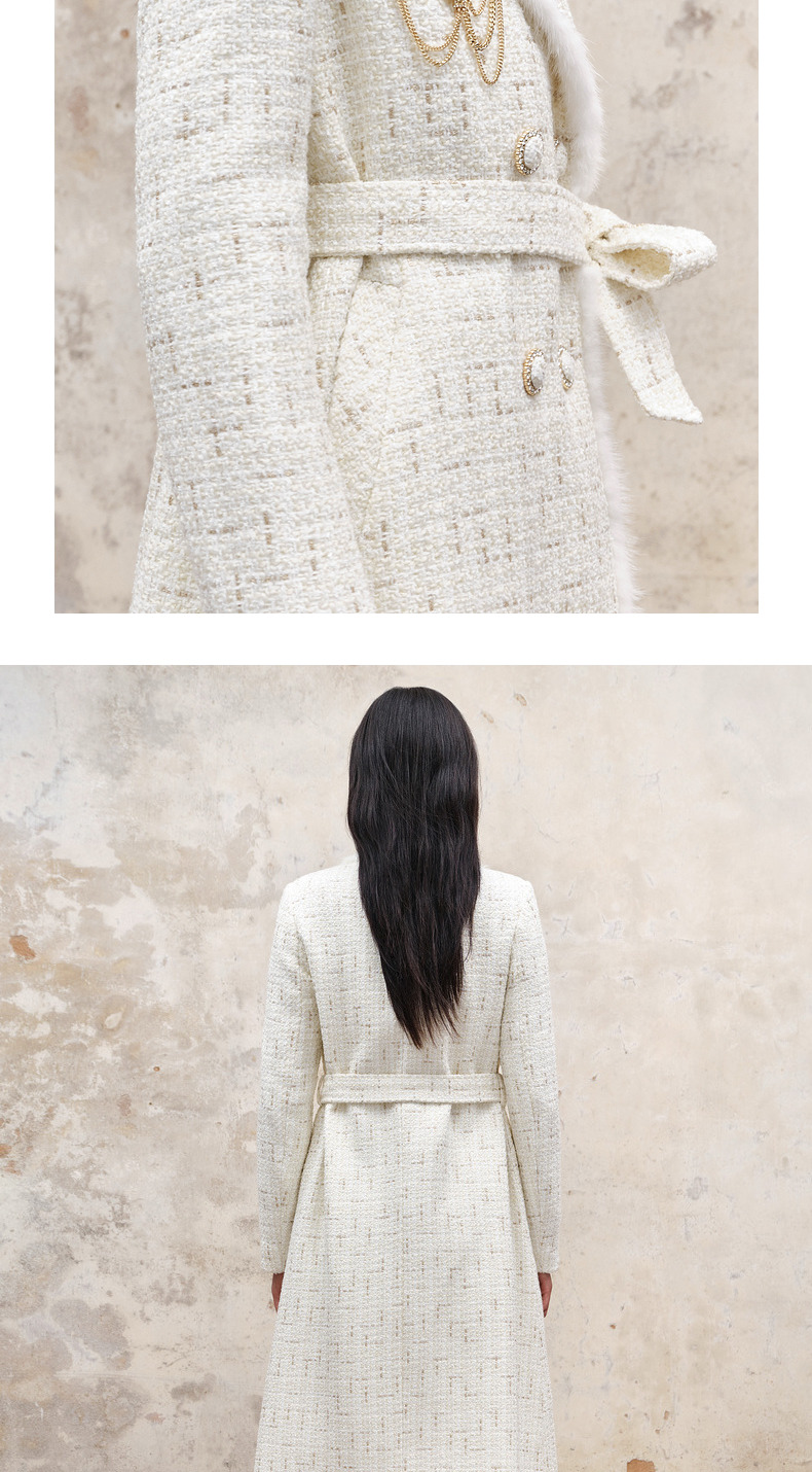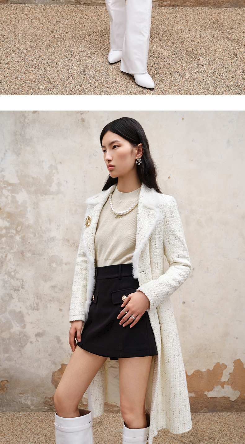 MAXRIENY小香风花纱大衣中长款2023冬季水貂毛外套(货号:MS88CT534)