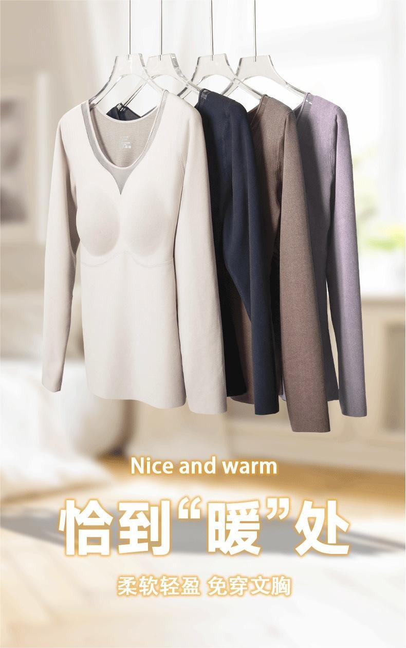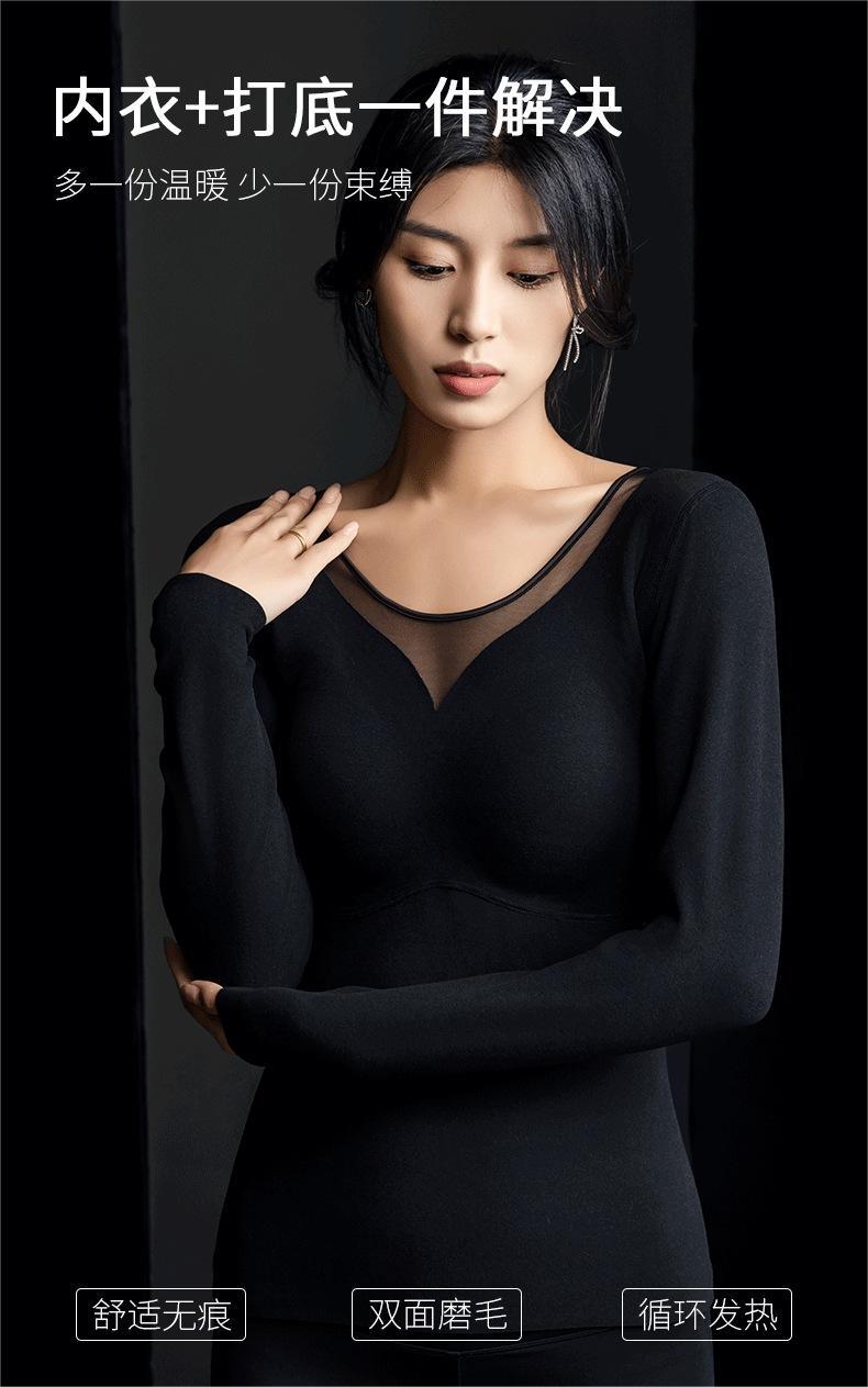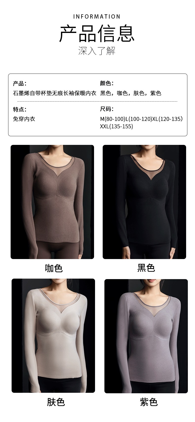 【科技发热均衡锁温❗️高弹服帖自由舒展】石墨烯发热内衣女士加绒加厚带胸垫一体打底保暖内衣长袖8856。jb