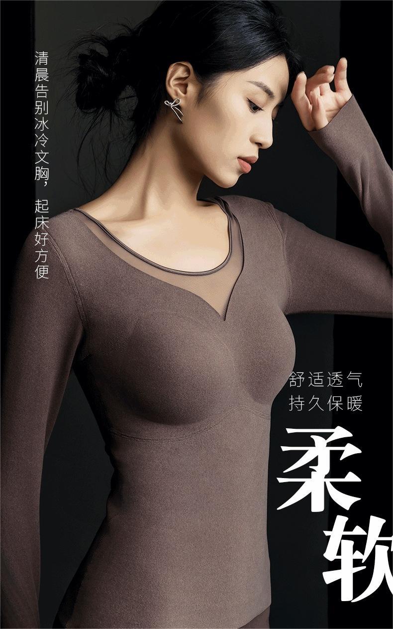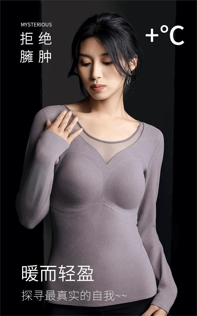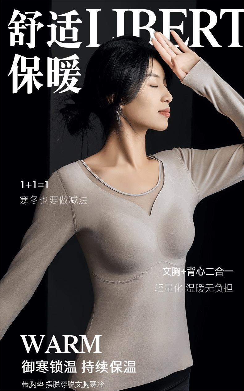 【科技发热均衡锁温❗️高弹服帖自由舒展】石墨烯发热内衣女士加绒加厚带胸垫一体打底保暖内衣长袖8856。jb