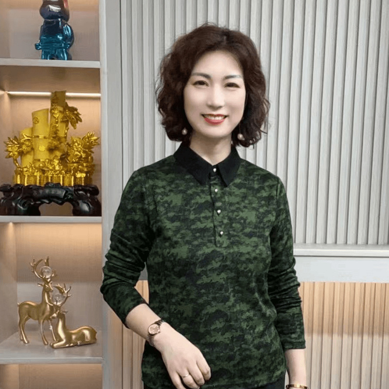妈妈装2025秋新款时尚花色翻领长袖小衫大码遮肚女装洋气显瘦上衣