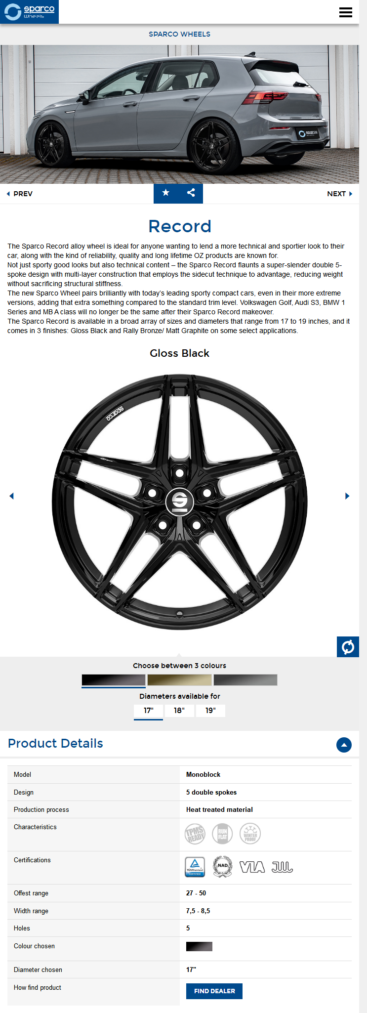SPARCO RECORD / 17/18/19寸 / 铸造 / 意大利进口 OZ子品牌