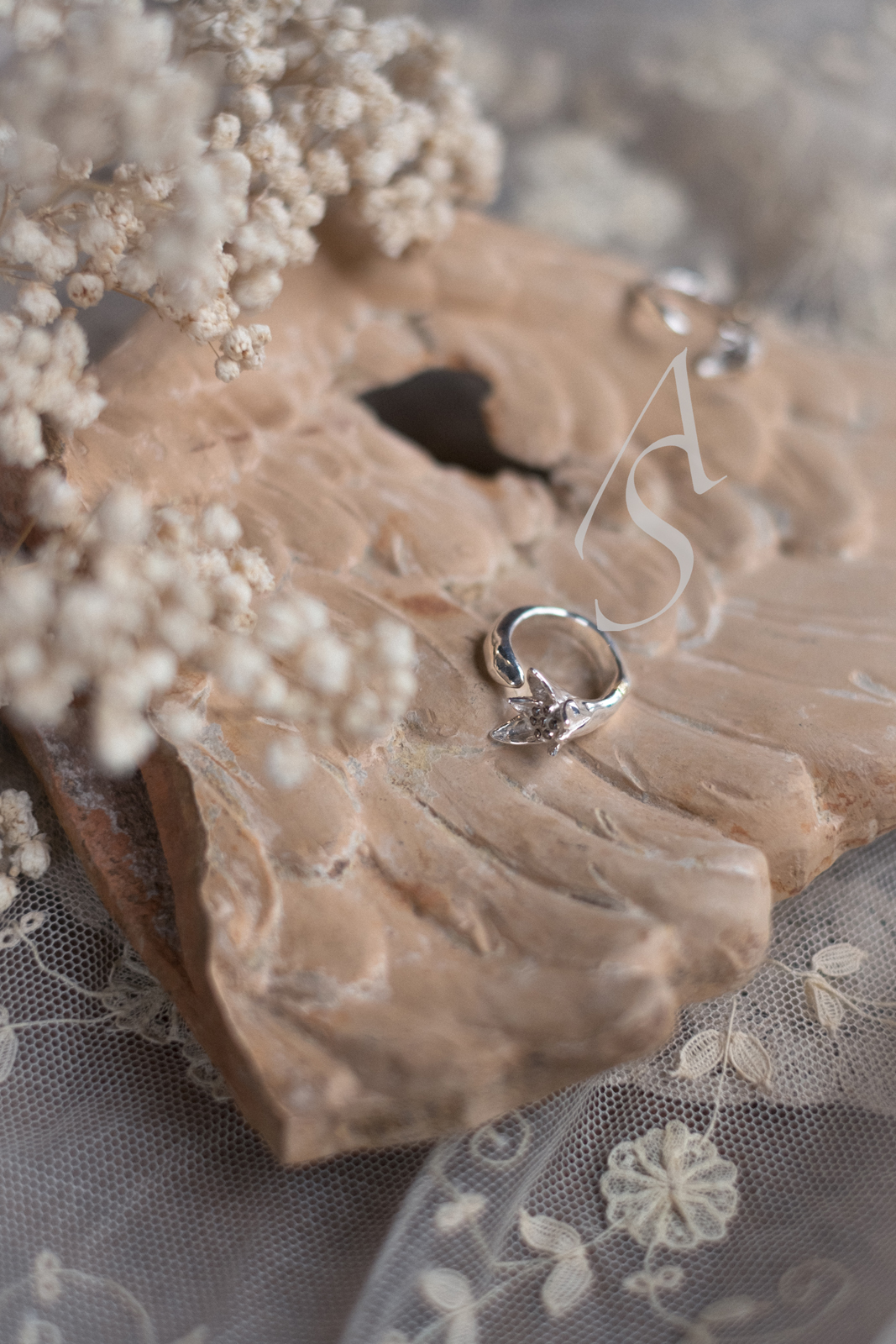 Rosa Maria 26SS CARYSSA 香槟色原矿钻小号/大号夹竹桃手工银戒