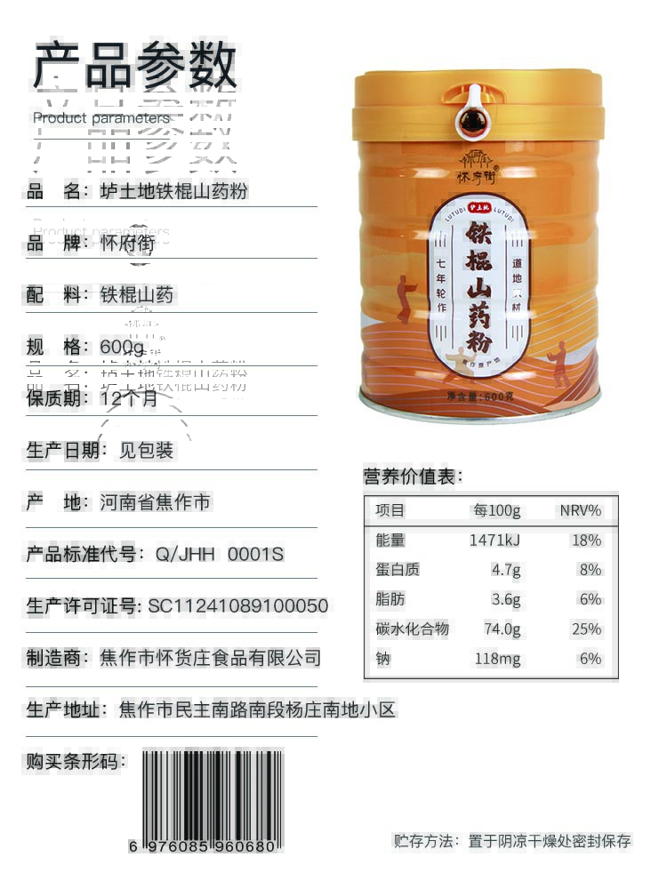 【黄妈家】怀府街铁棍山药粉|麸炒口感细腻 金罐装升级版 大容量 600g早餐不添加才美味