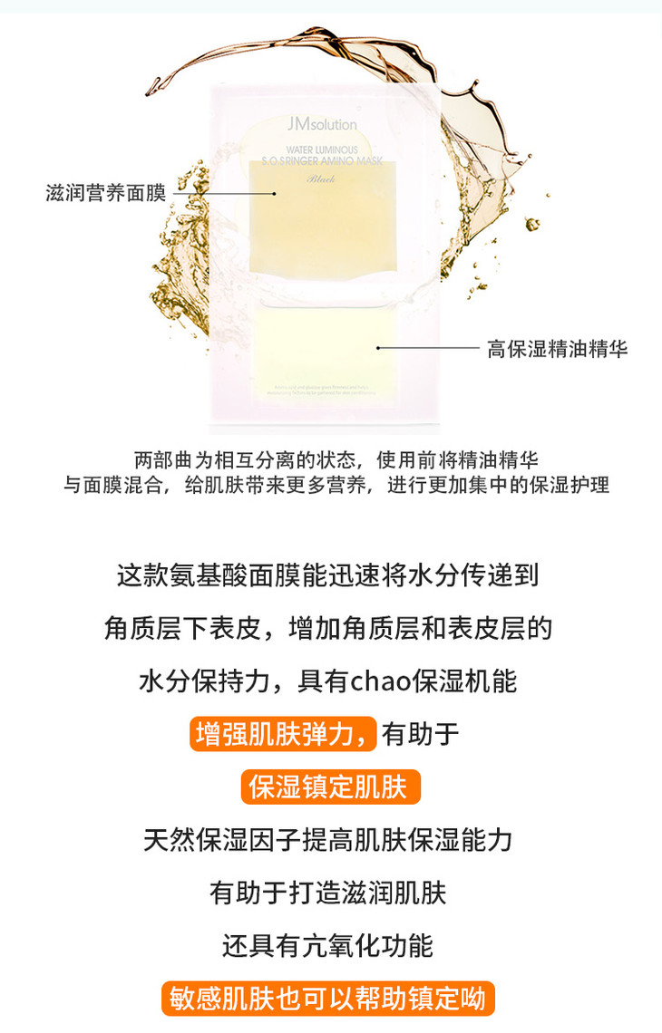韩国JMsolution安瓶面膜系列 氨基酸/玻尿酸 维他命面膜 JM安瓶面膜/维他命面膜/美白提亮(版本随机发)