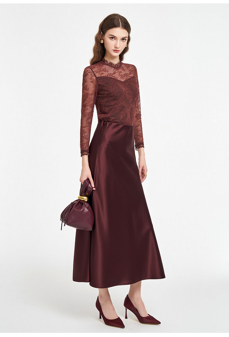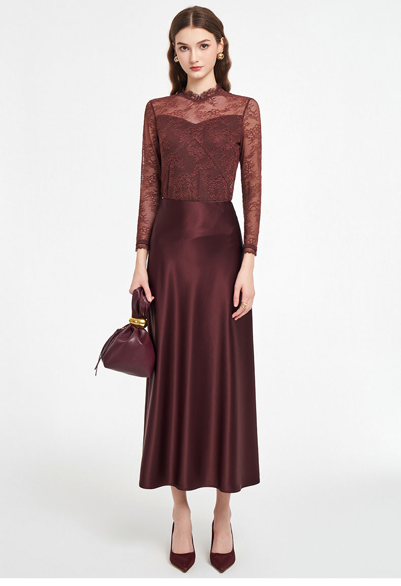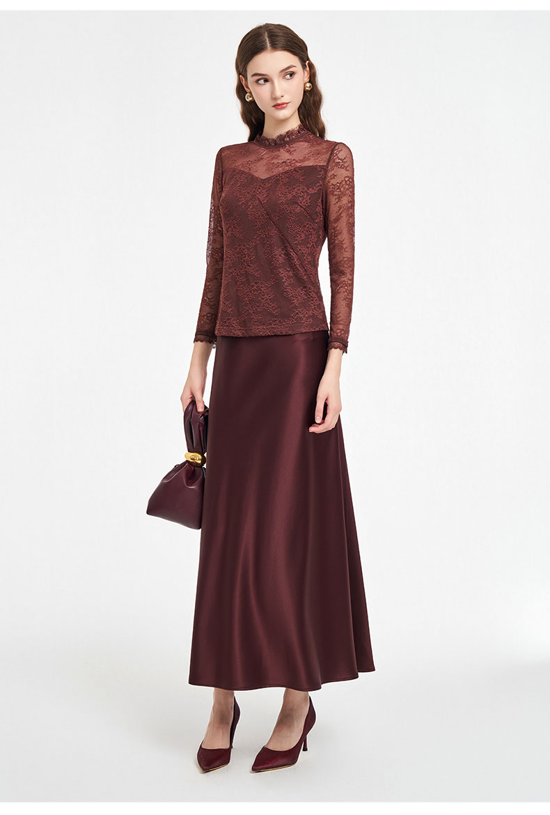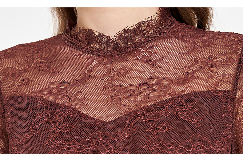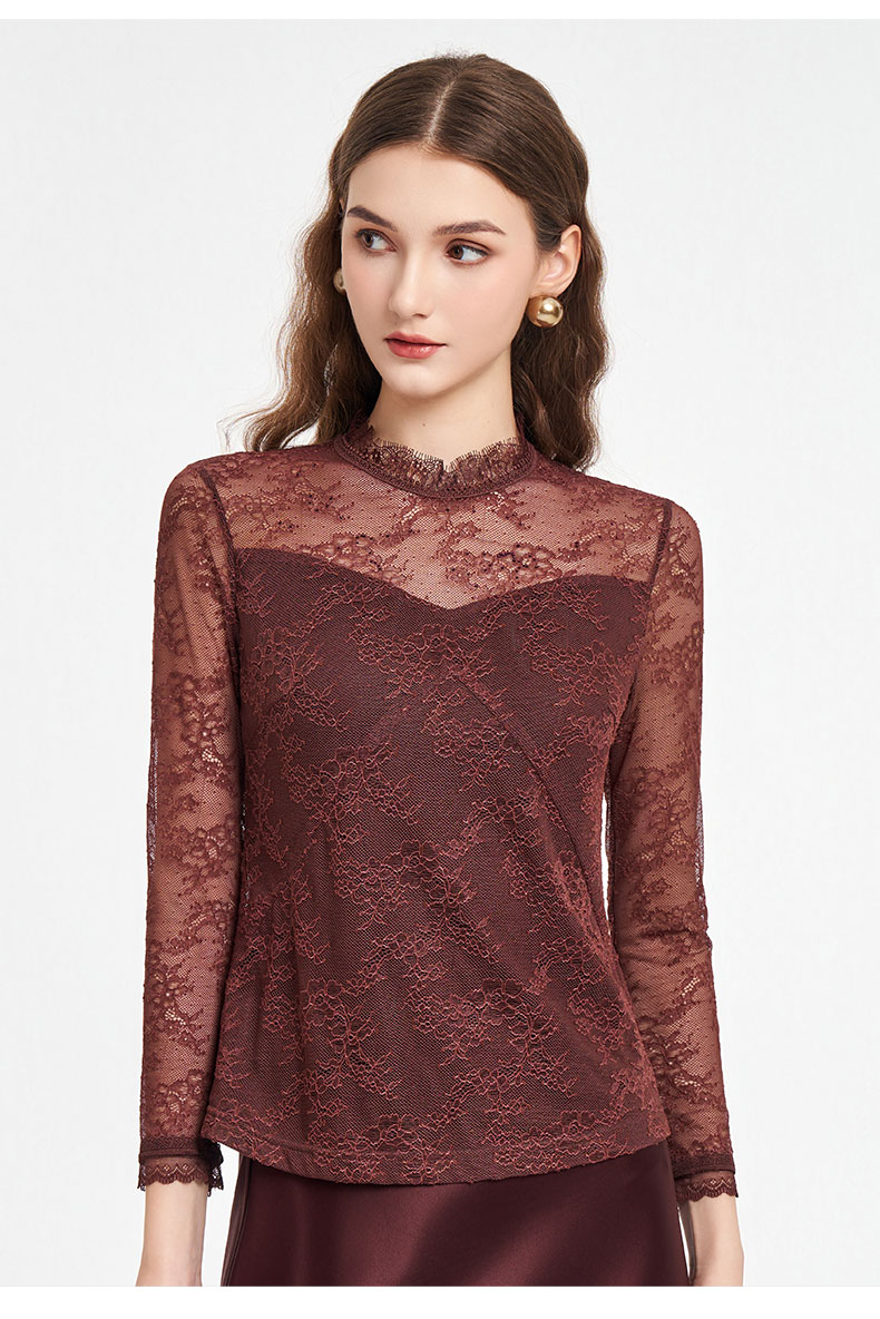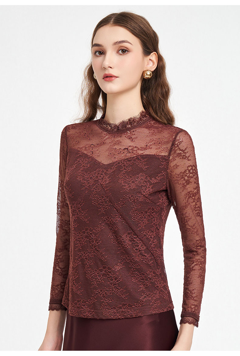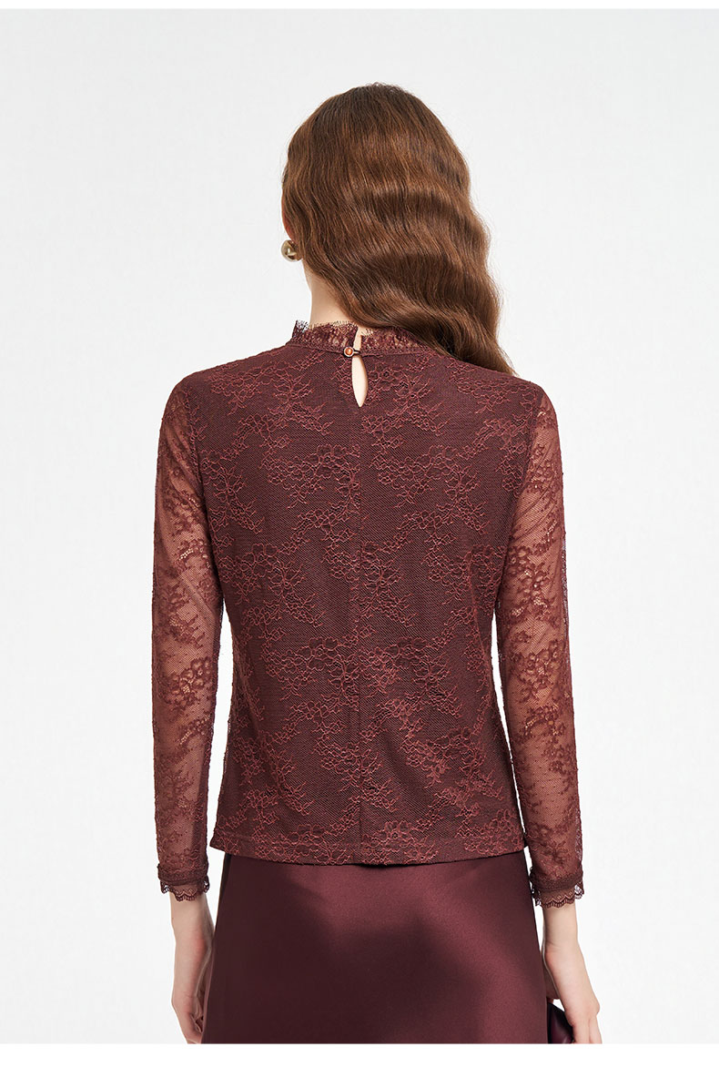 乔万尼2025新品蕾丝美学西梅紫修身打底长袖小衫上衣ED3C277