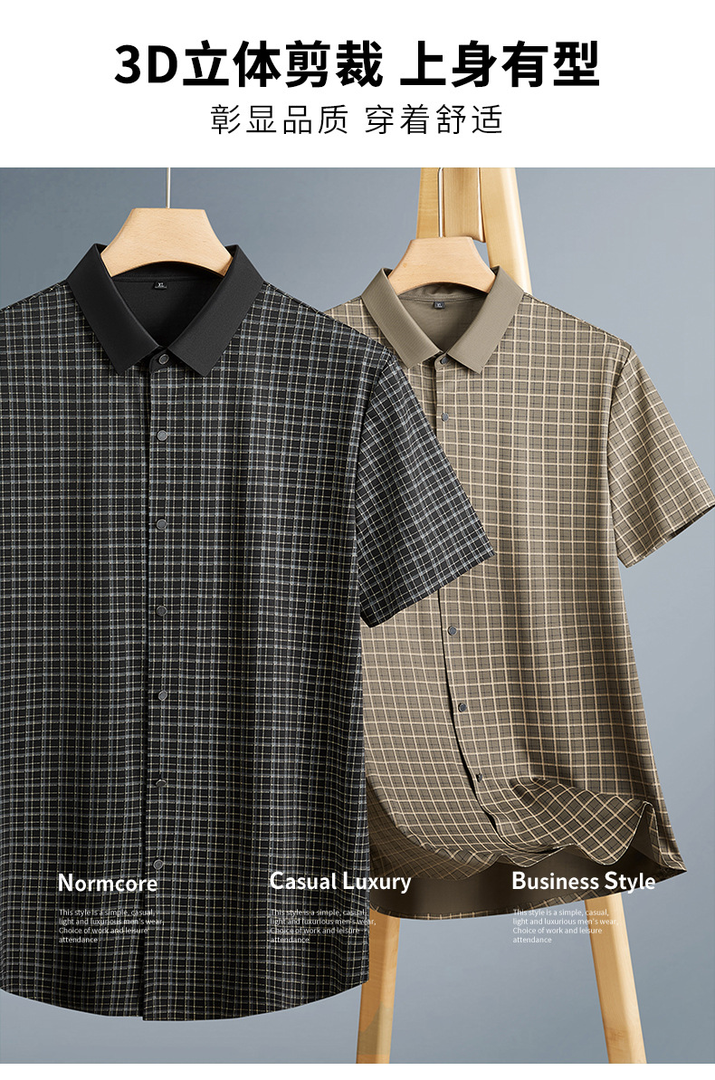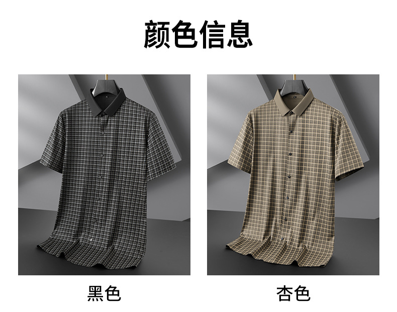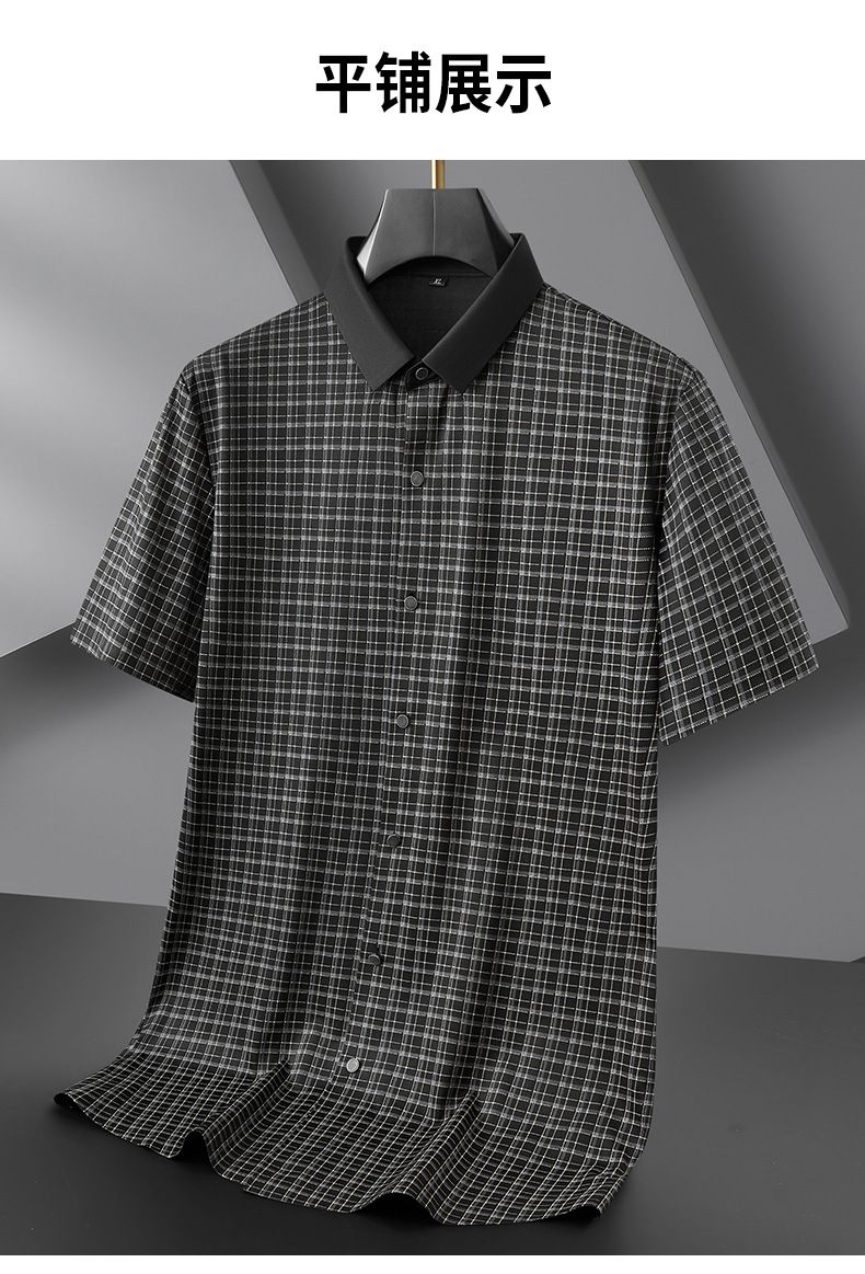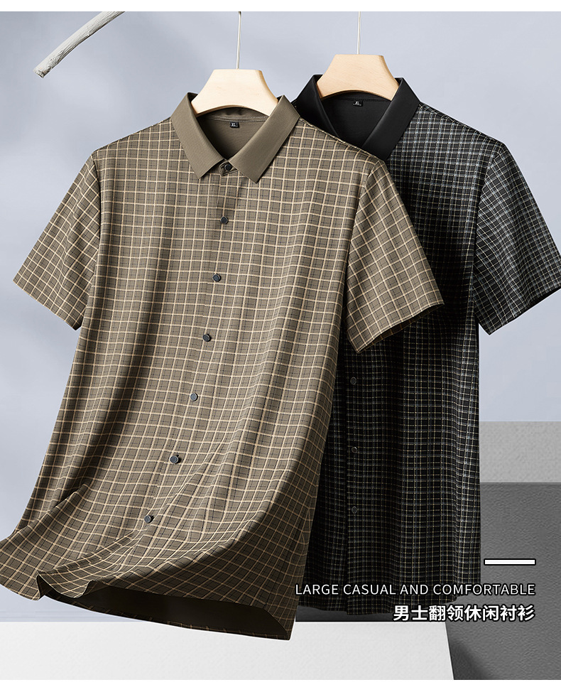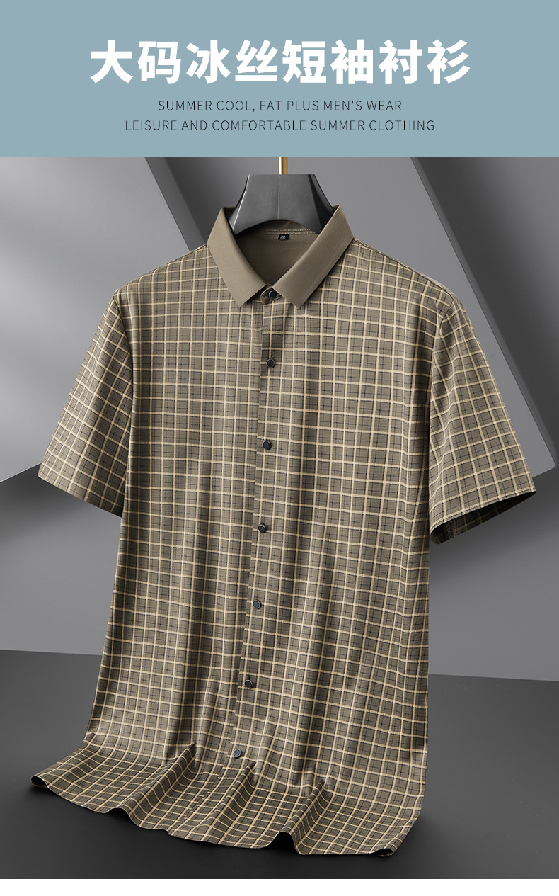 【冰丝】【DPF】大依优型大码短袖衬衫加肥大码格子半袖衬衣男士冰丝凉感夏装中年胖子上衣休闲商务
